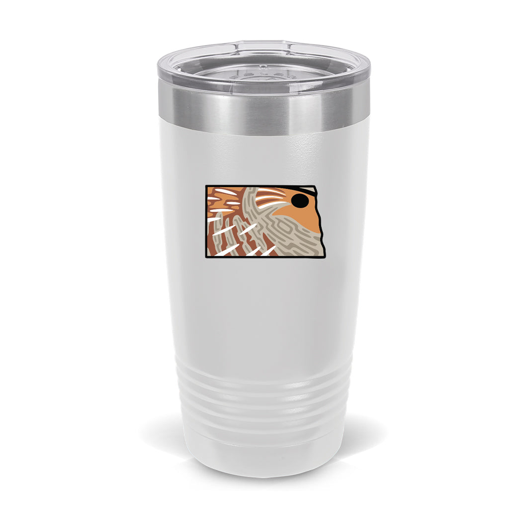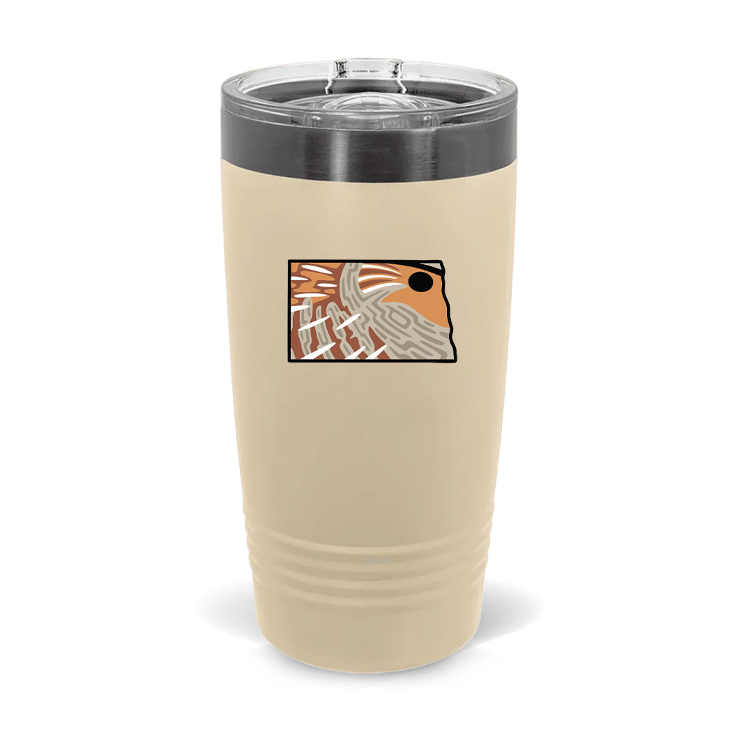 The North Dakota Hungarian Partridge Coffee Tumbler pairs fine design with hunting heritage–and is the perfect gift for western upland bird hunters on the go. The durable stainless steel insulation will protect the temperature of your coffee at all costs.