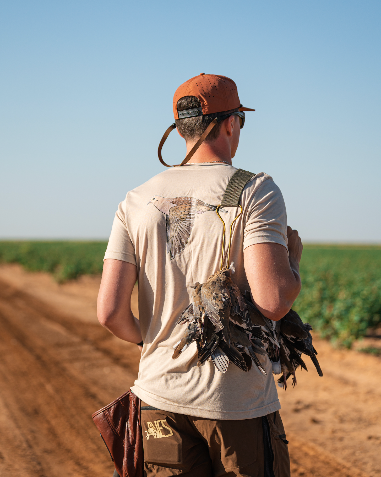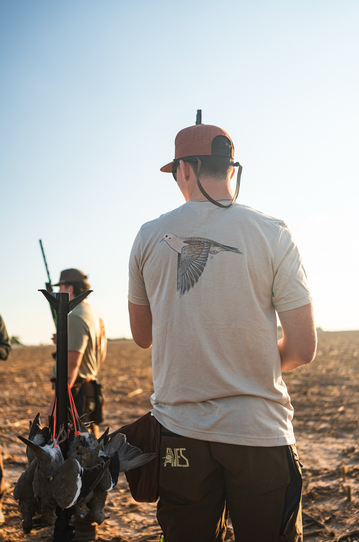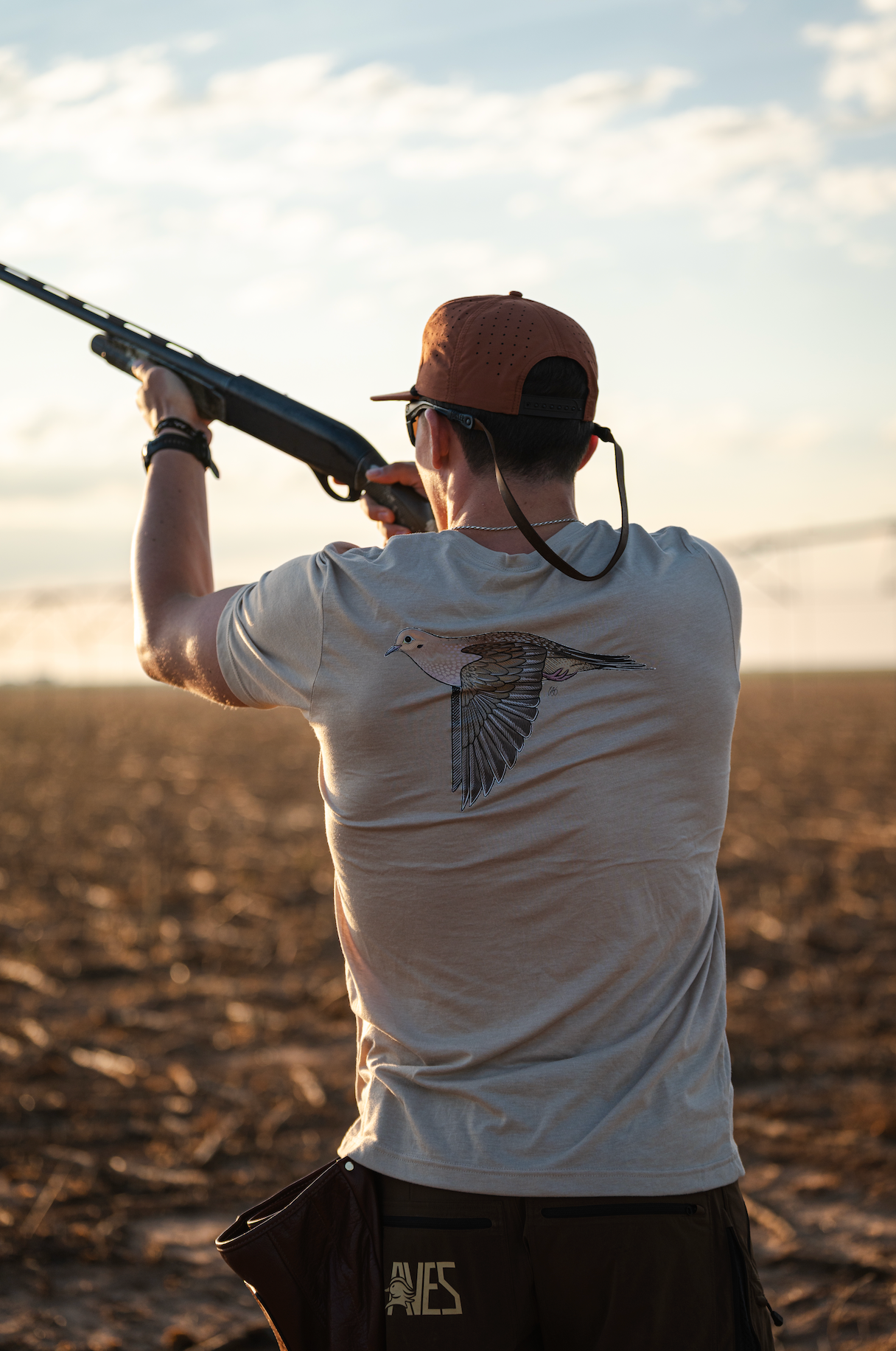 The Dove Shirt is the perfect gift for anyone who loves hunting Mourning Doves. Designed by Montana artist Casey Underwood. This exceptionally soft and lightweight unisex short-sleeved tee is pre-shrunk and made with 50% polyester, 25% Airlume combed and ring-spun cotton, and 25% rayon. Available in Blaze Orange, Olive, Tan and Denim colors.
