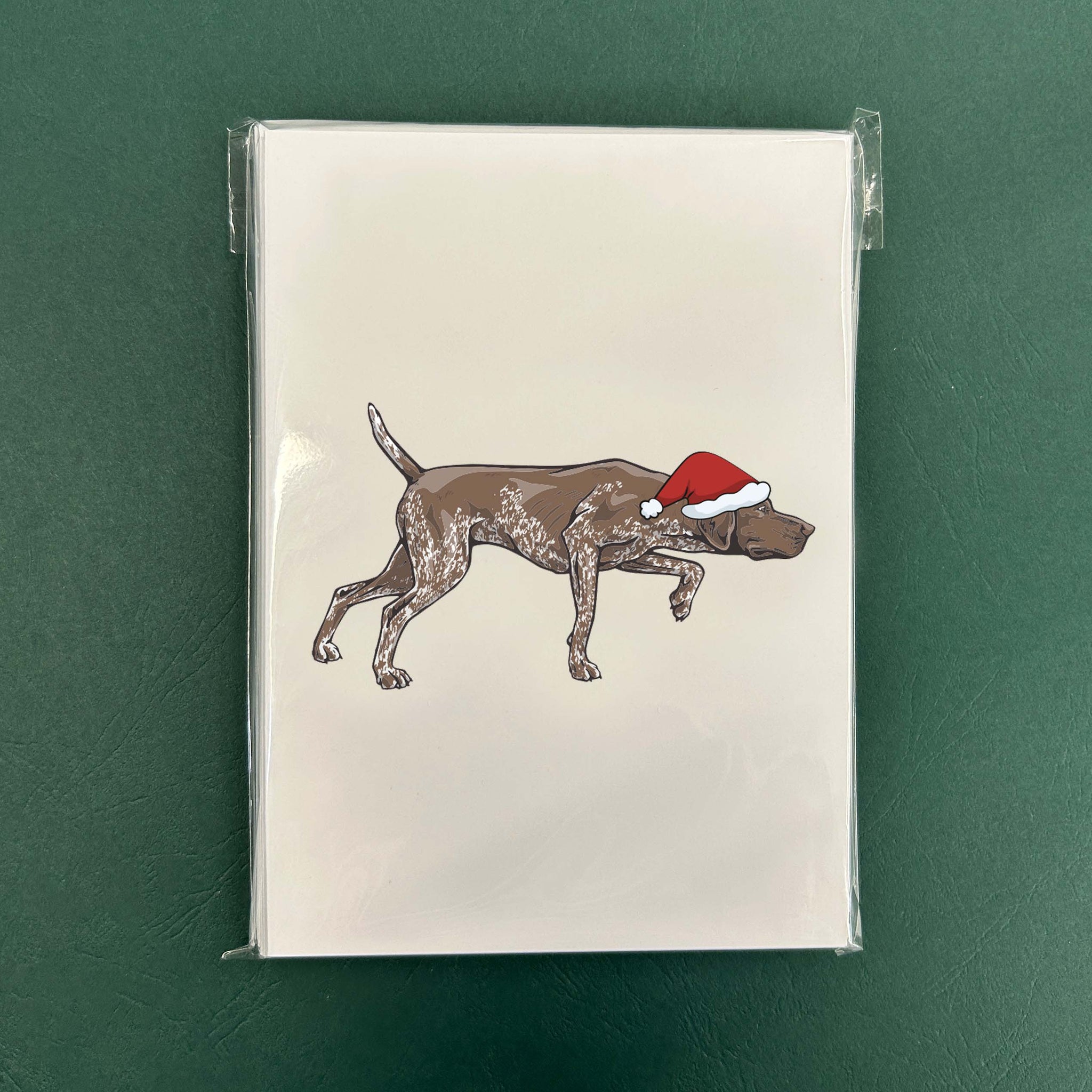 The GSP Christmas Card - Set of 12 showcases the incredible, versatile German Shorthaired Pointer. A memorable way to share a festive note with anyone who loves a shorthair. The set comes with a dozen 5x7 cards (blank inside) and 12 white envelopes. Available as either a "one foot lifted" or "four feet planted" version (we don't mix sets).
