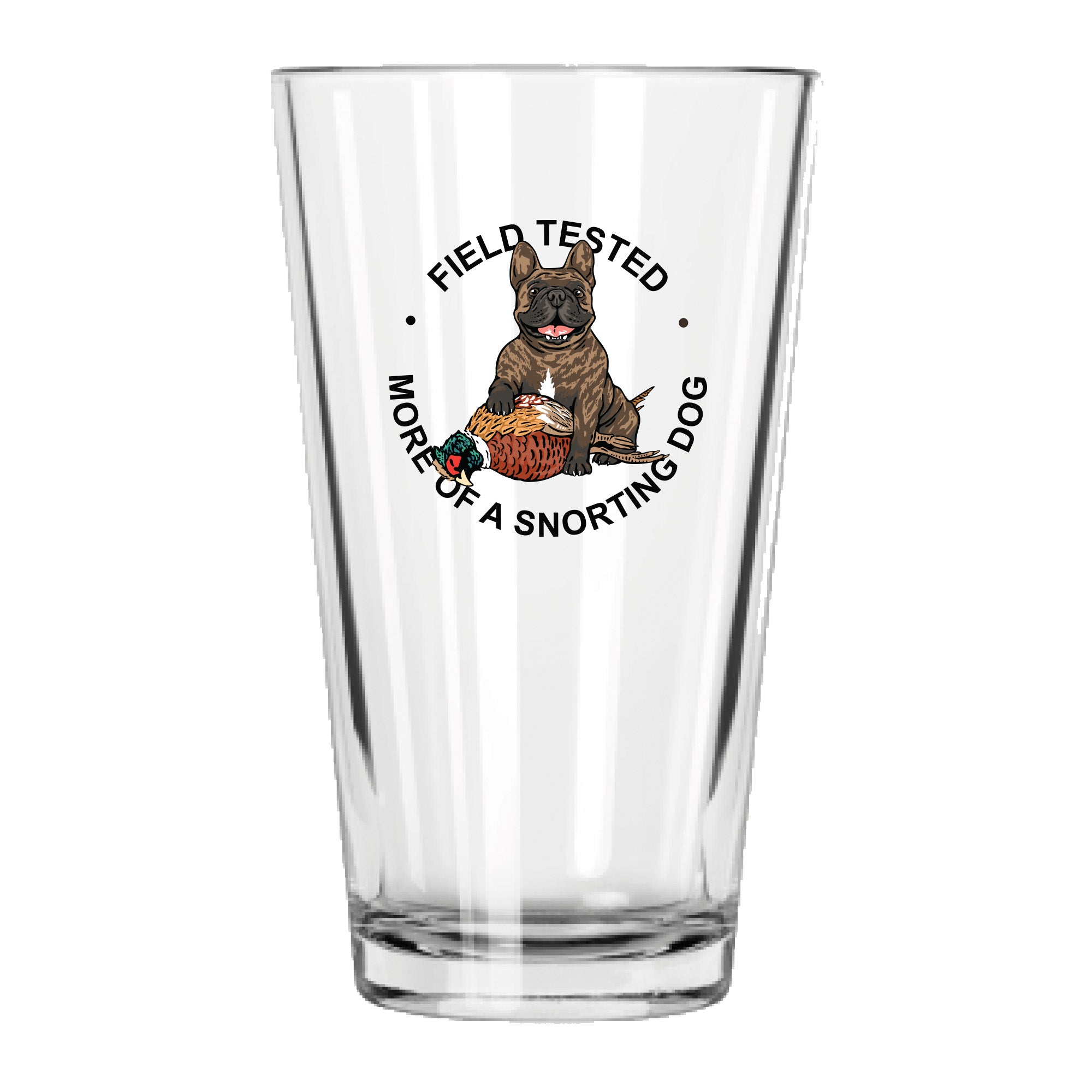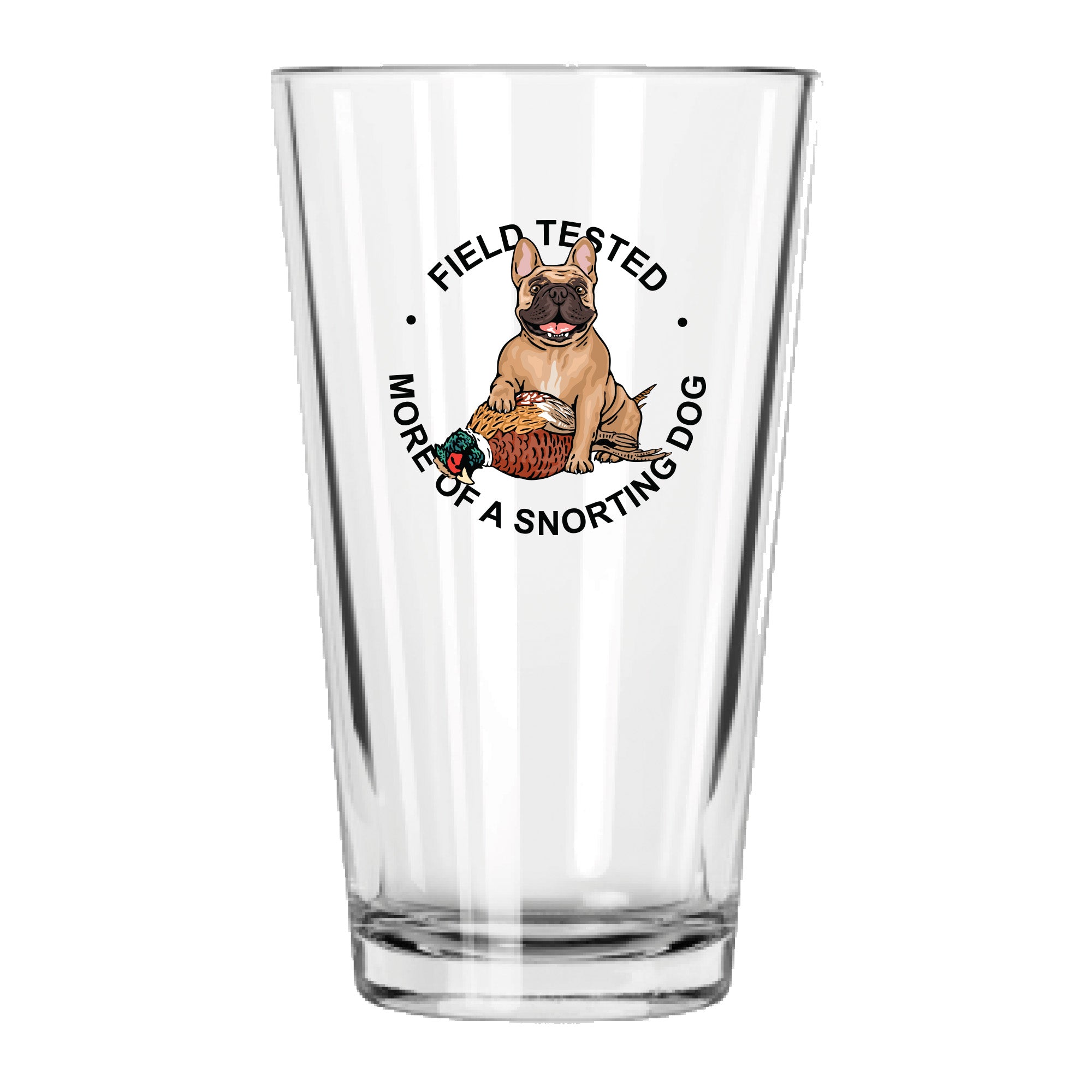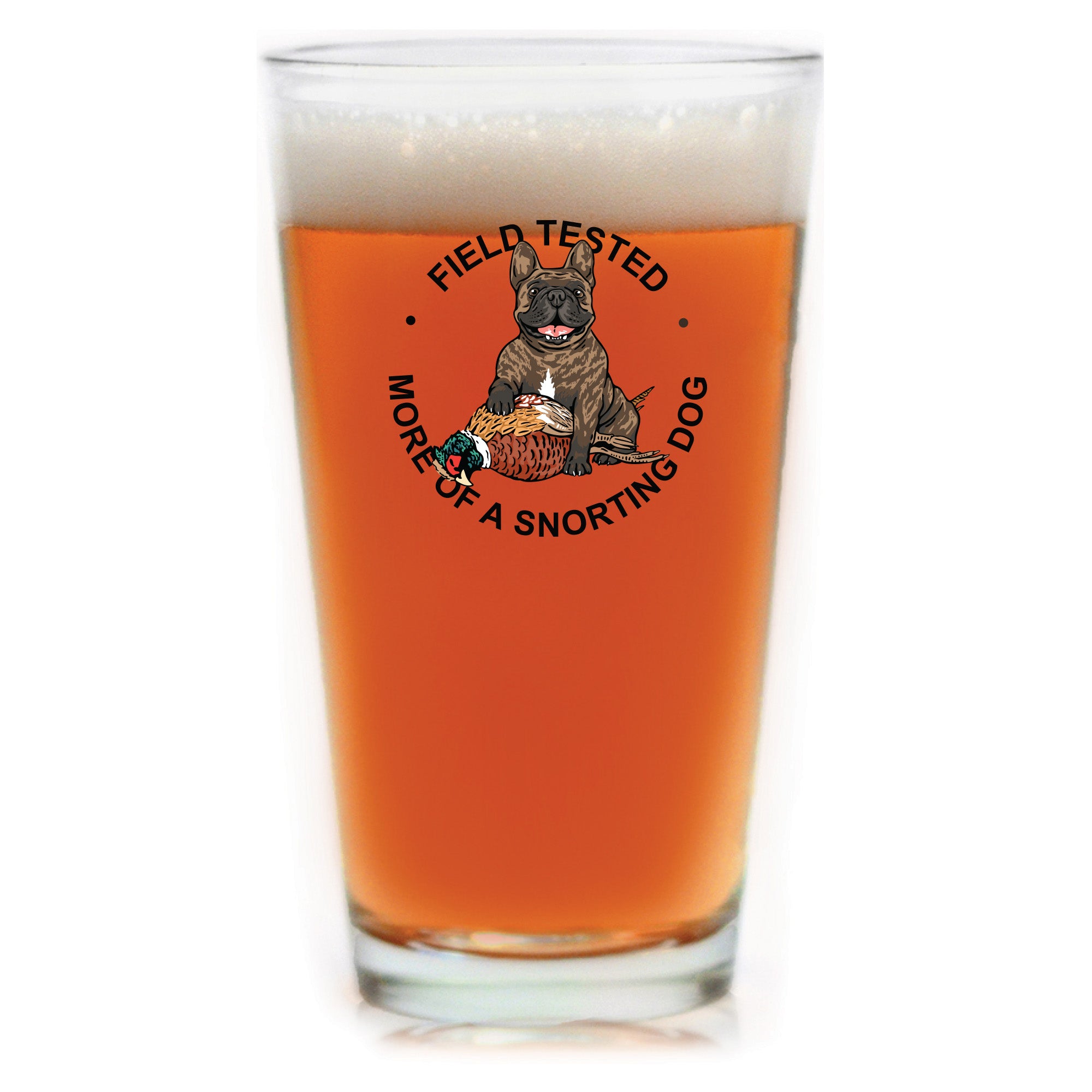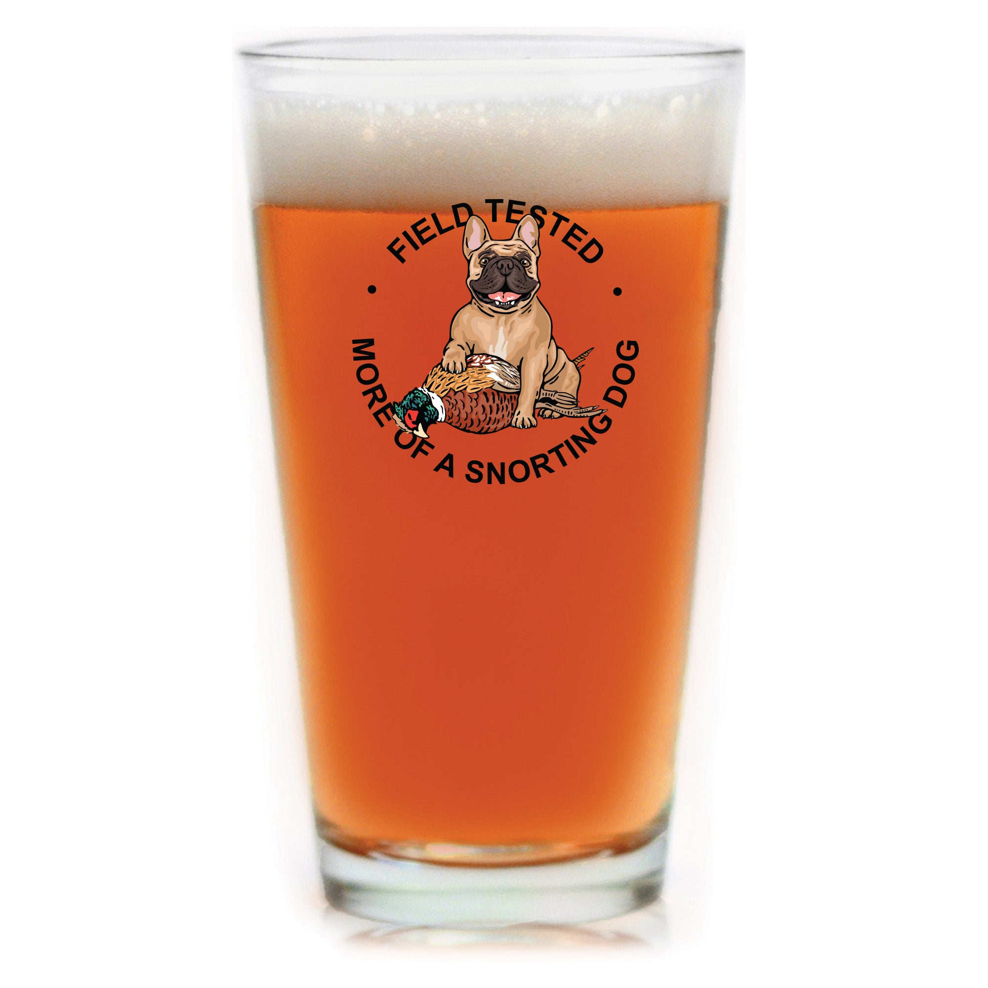 Celebrate your favorite couch companion with this 16oz Hunting French Bulldog Pint Glass! This is the perfect gift for anyone who owns this snorting little sidekick (whether they aspire to be a bird dog or not). Each glass has the "Bird Dog of the Day" logo engraved on the bottom of the glass, resulting in a beautiful surprise as you finish your drink.