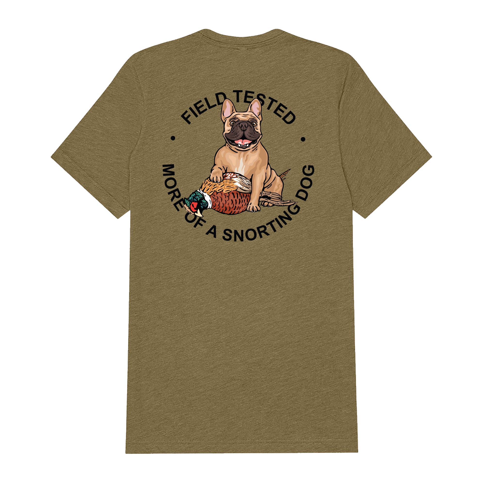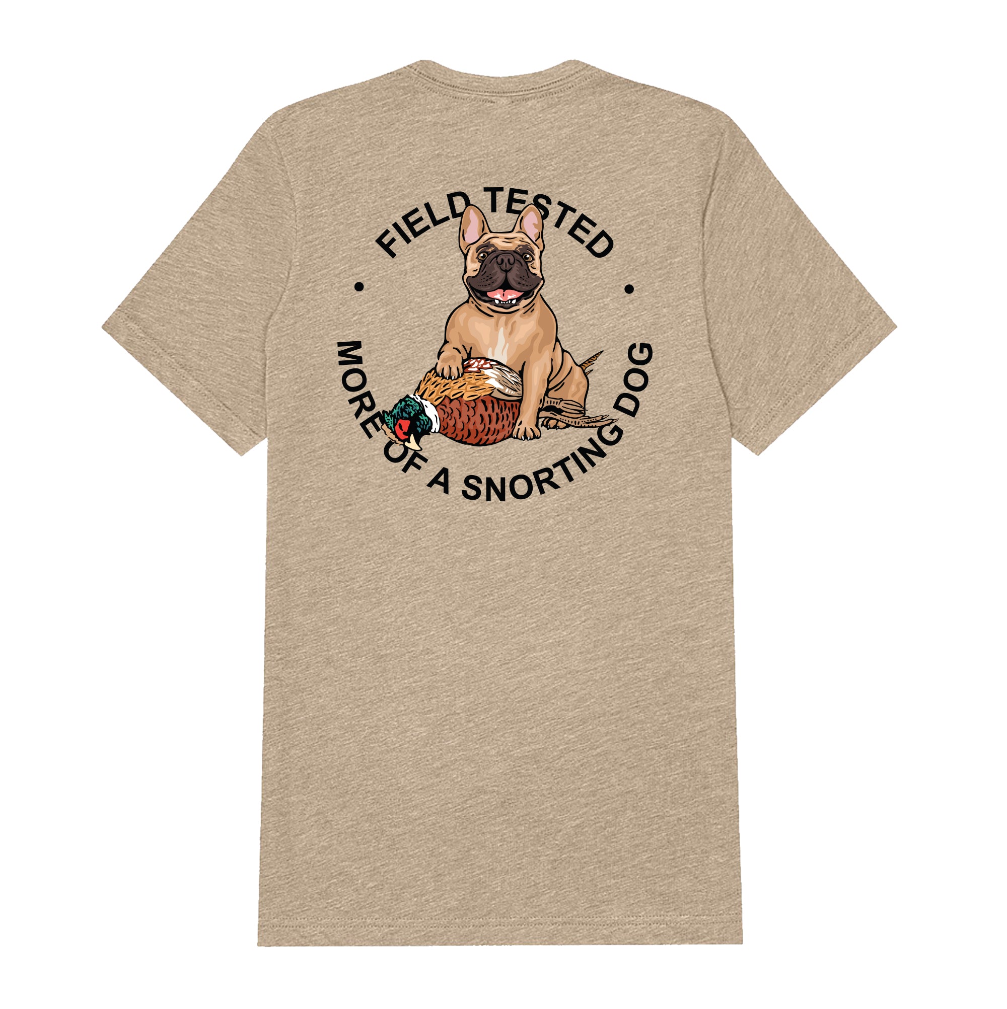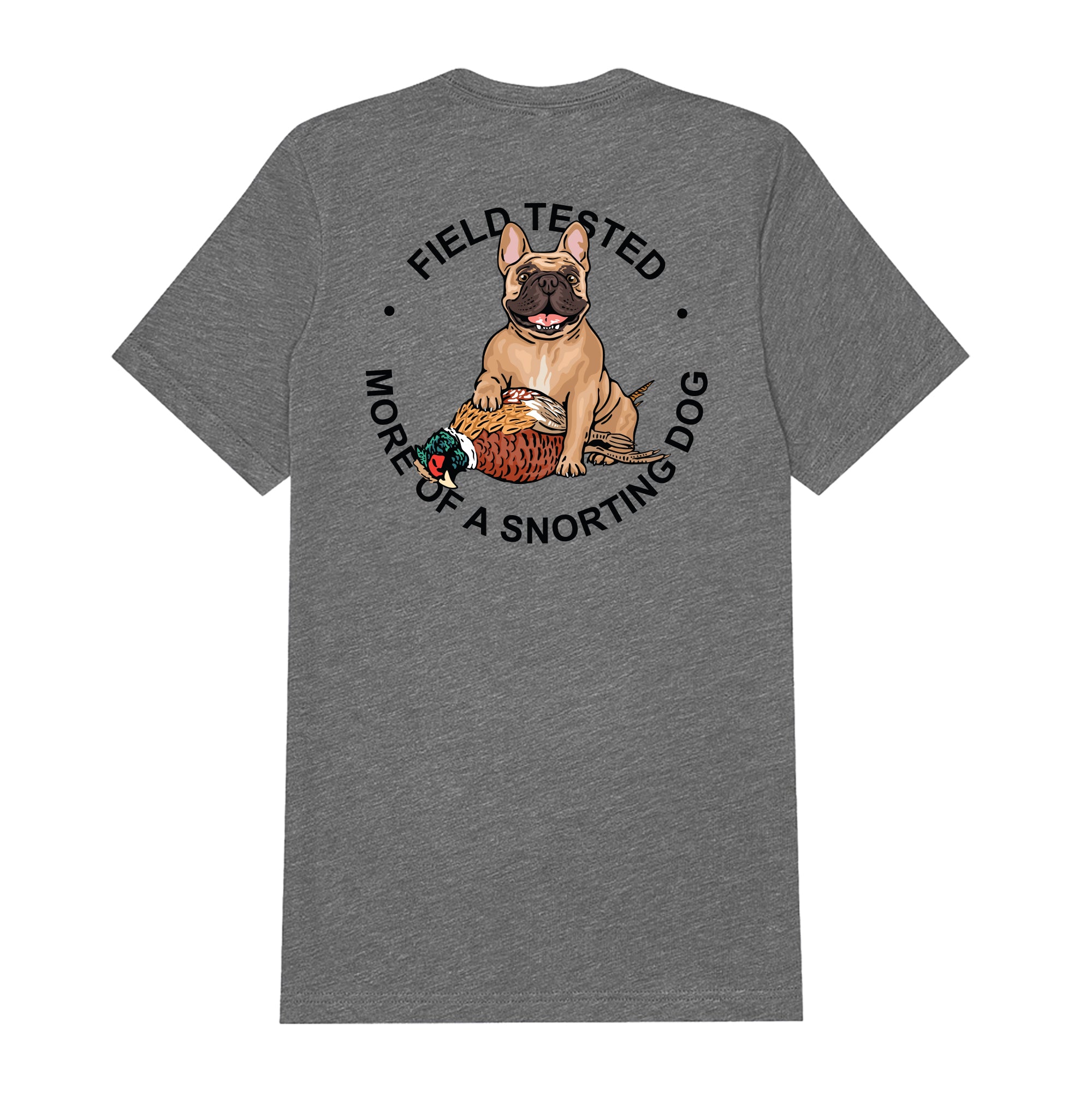 - Frenchie design on backside, Bird Dog of the Day logo front
