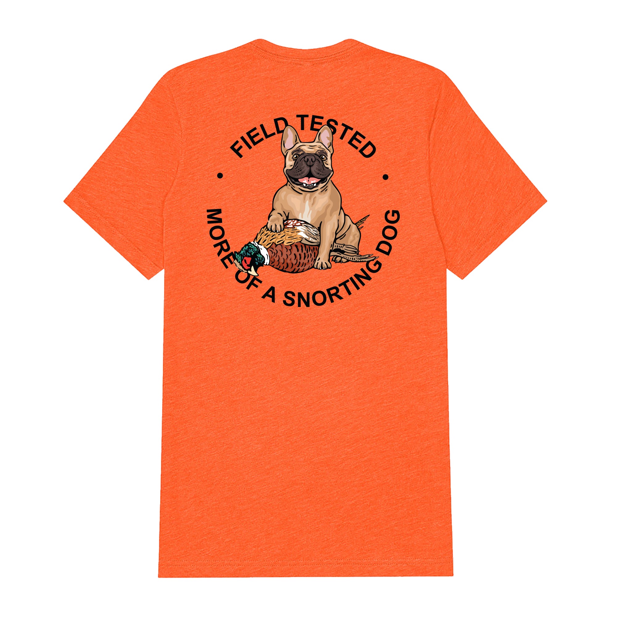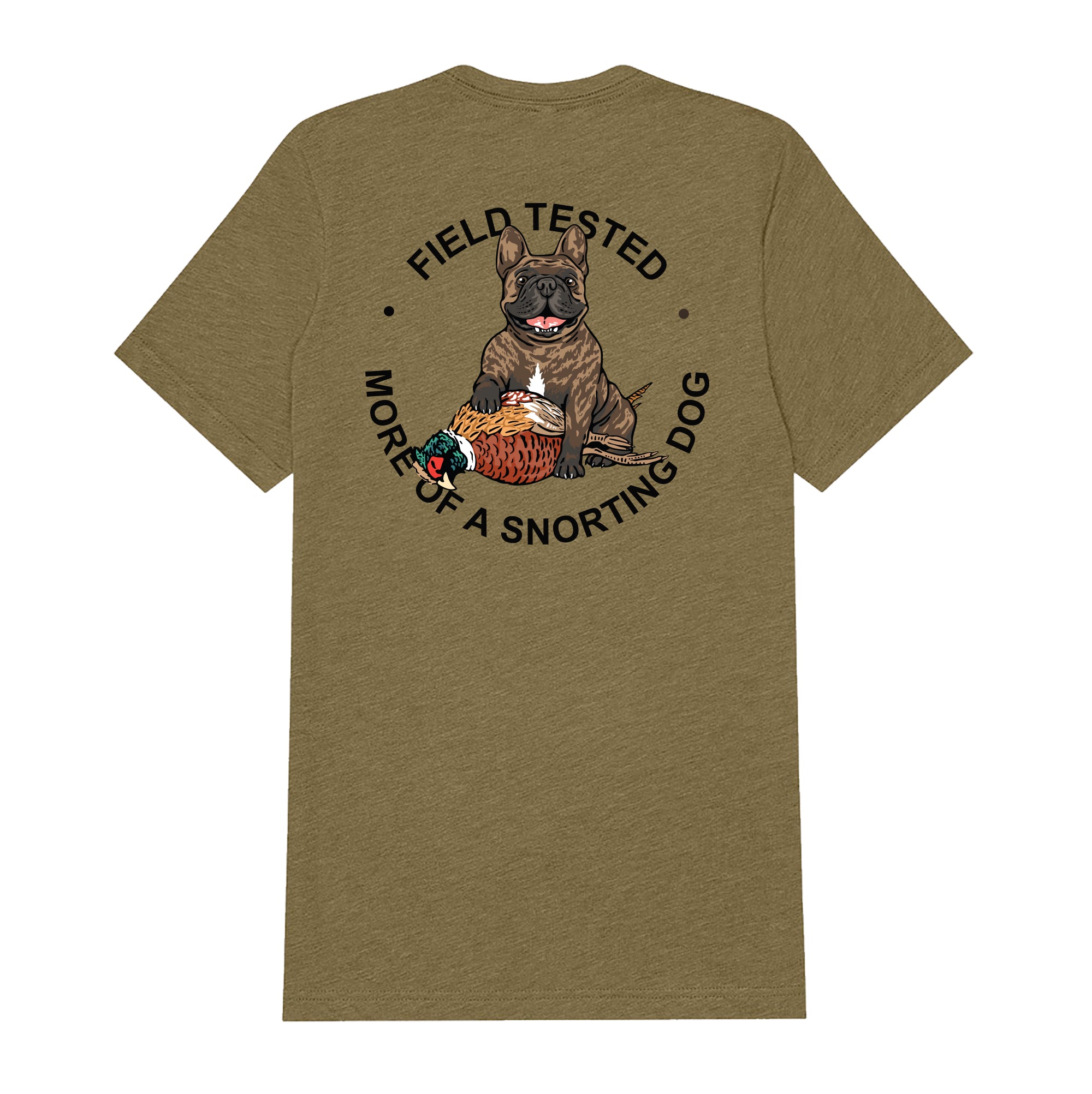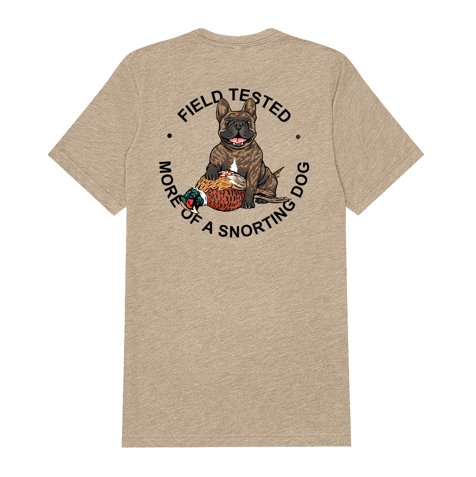 - Frenchie design on backside, Bird Dog of the Day logo front