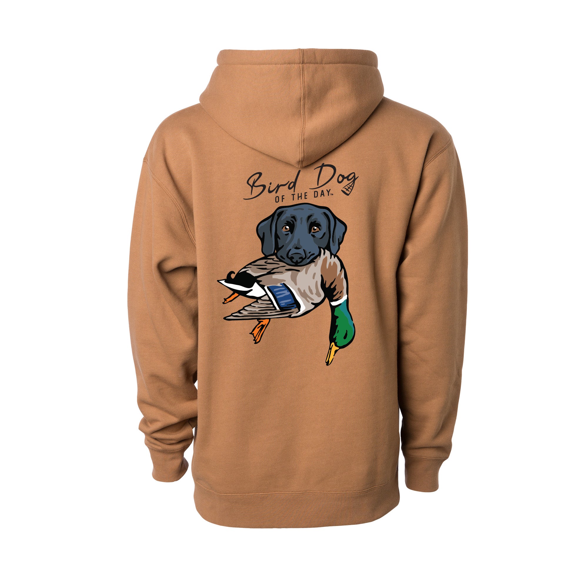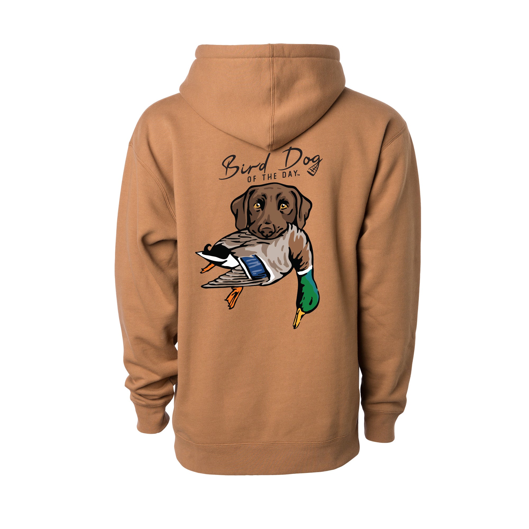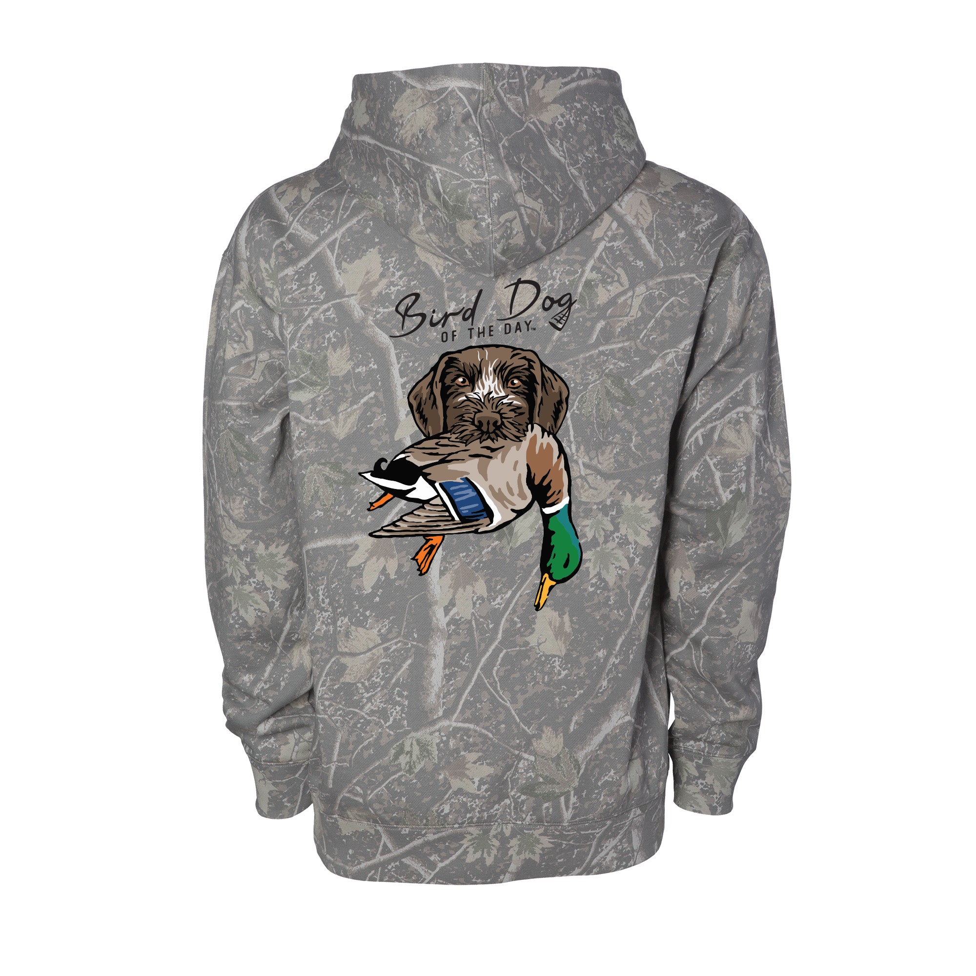 The backside has multiple options that include different duck dog breeds holding a mallard drake, as well as a classic blank backside option. If you're a duck hunter or duck dog owner, this hooded sweatshirt is made to be worn hard and often. The heavyweight brushed fleece will keep you warm in the field or at home, while staying soft and comfortable enough for everyday wear.