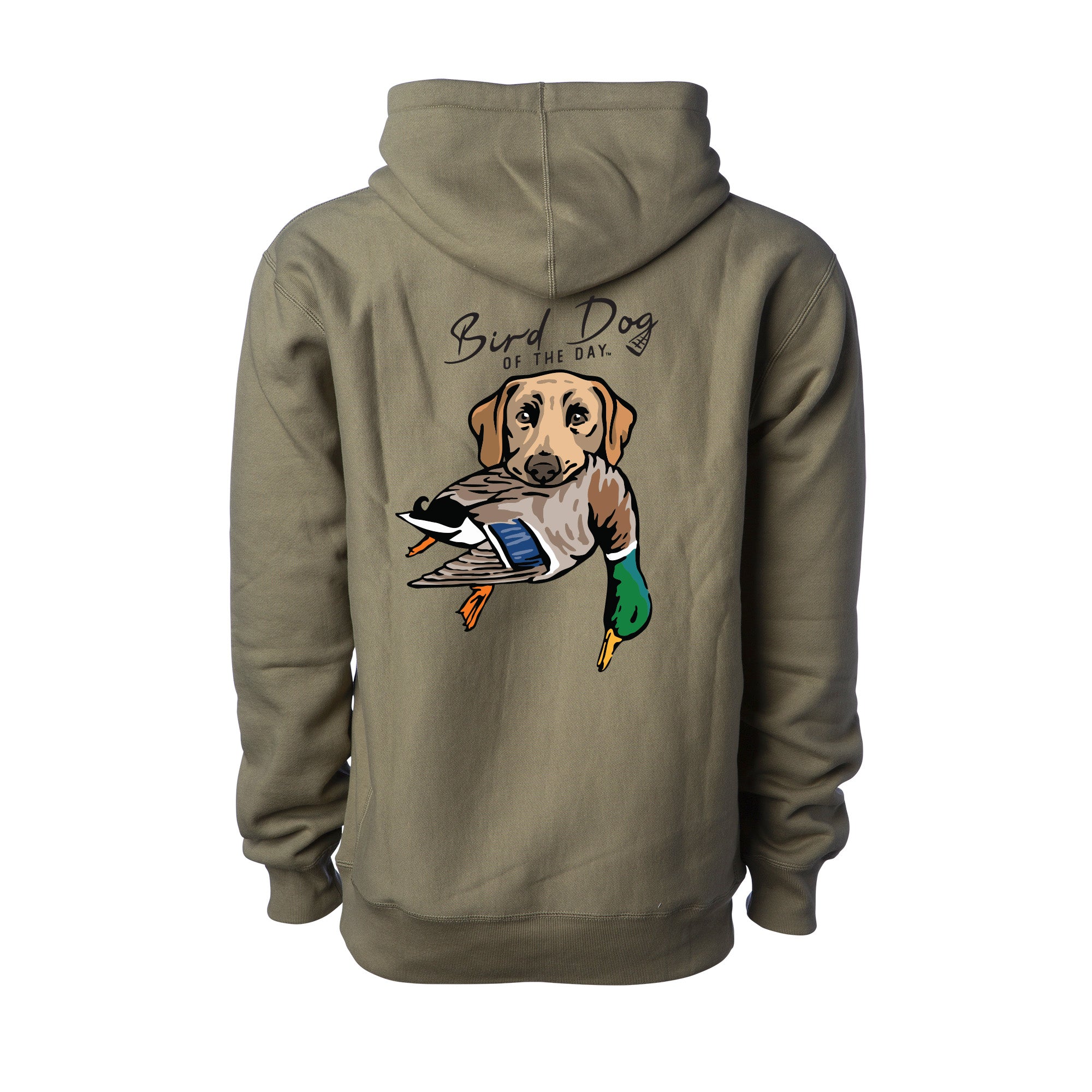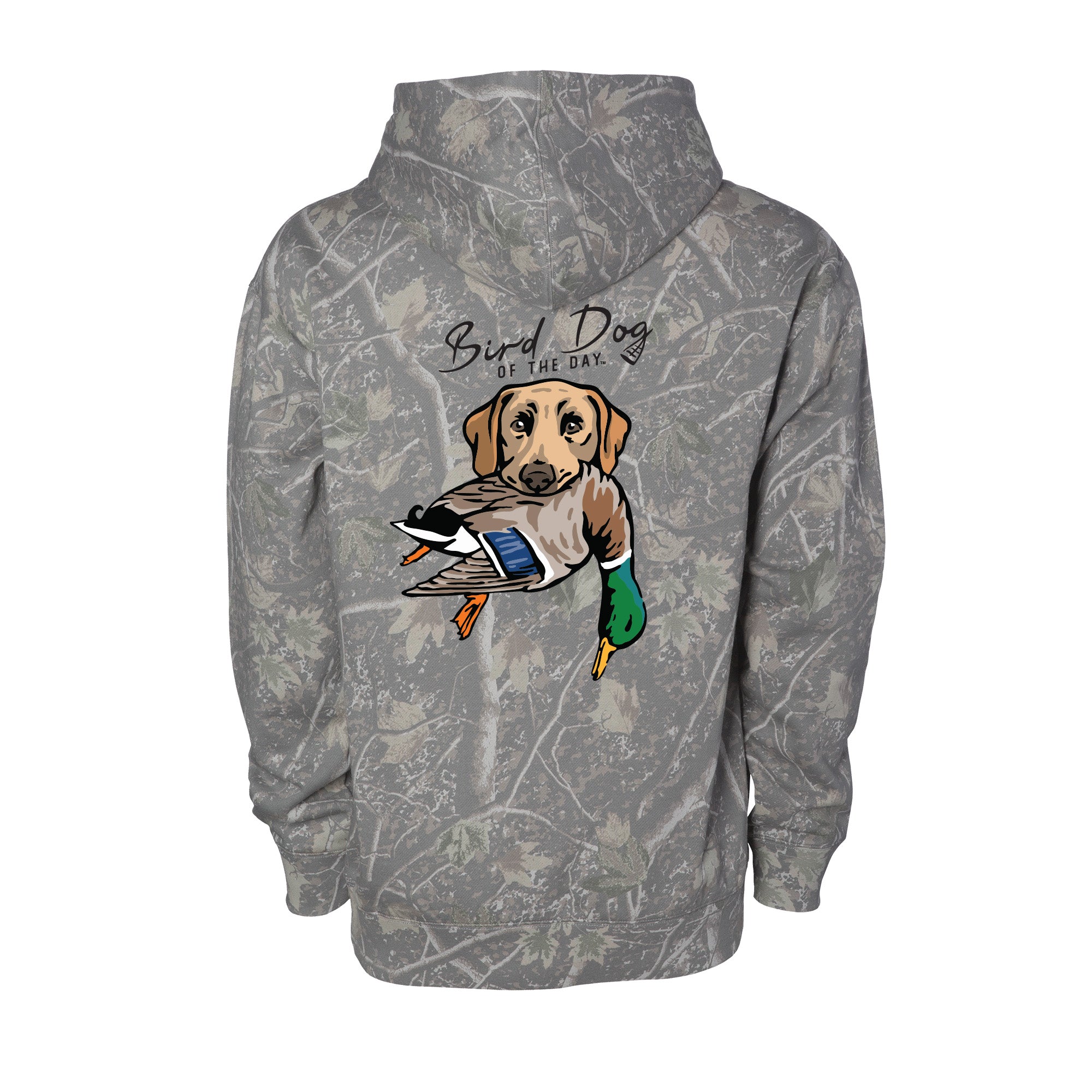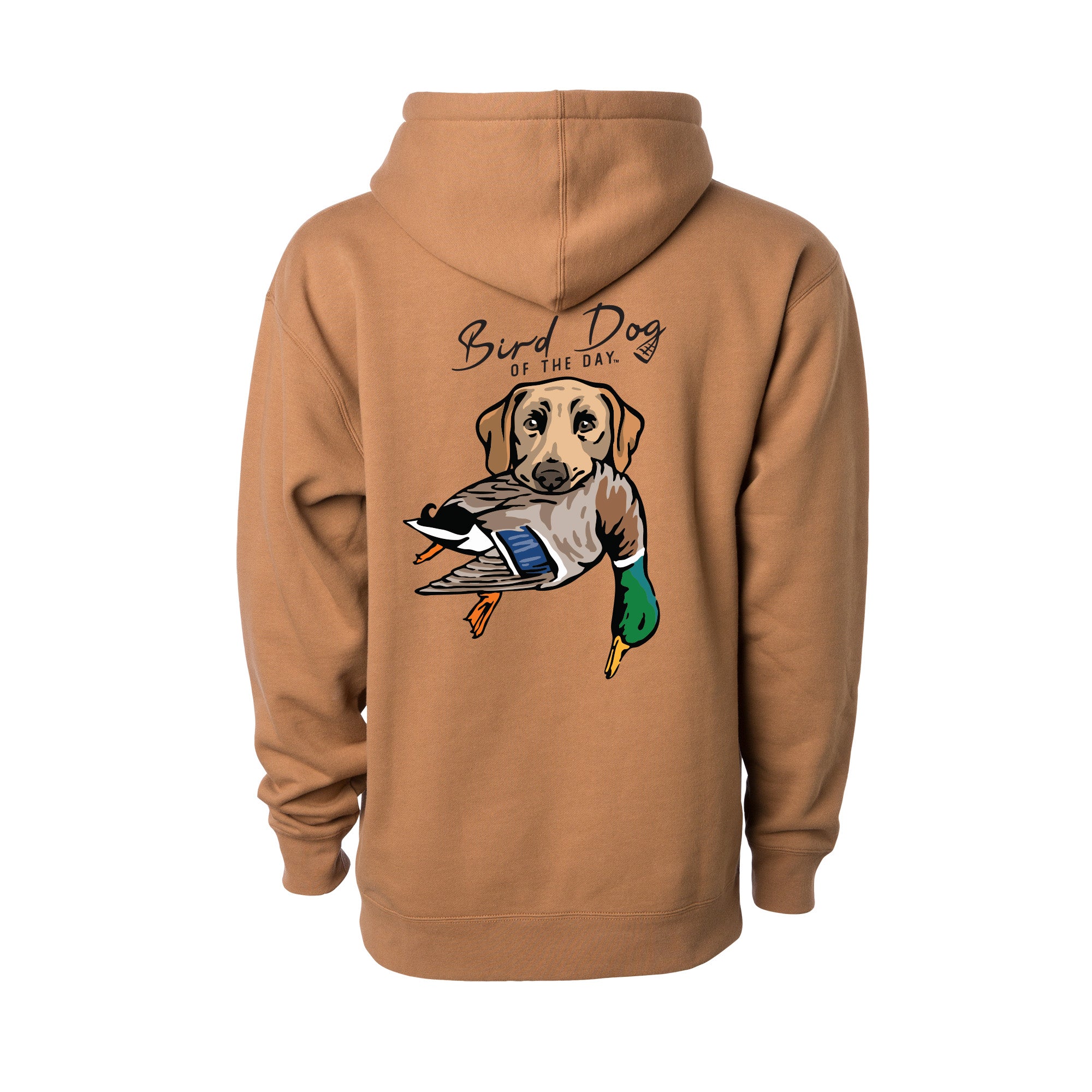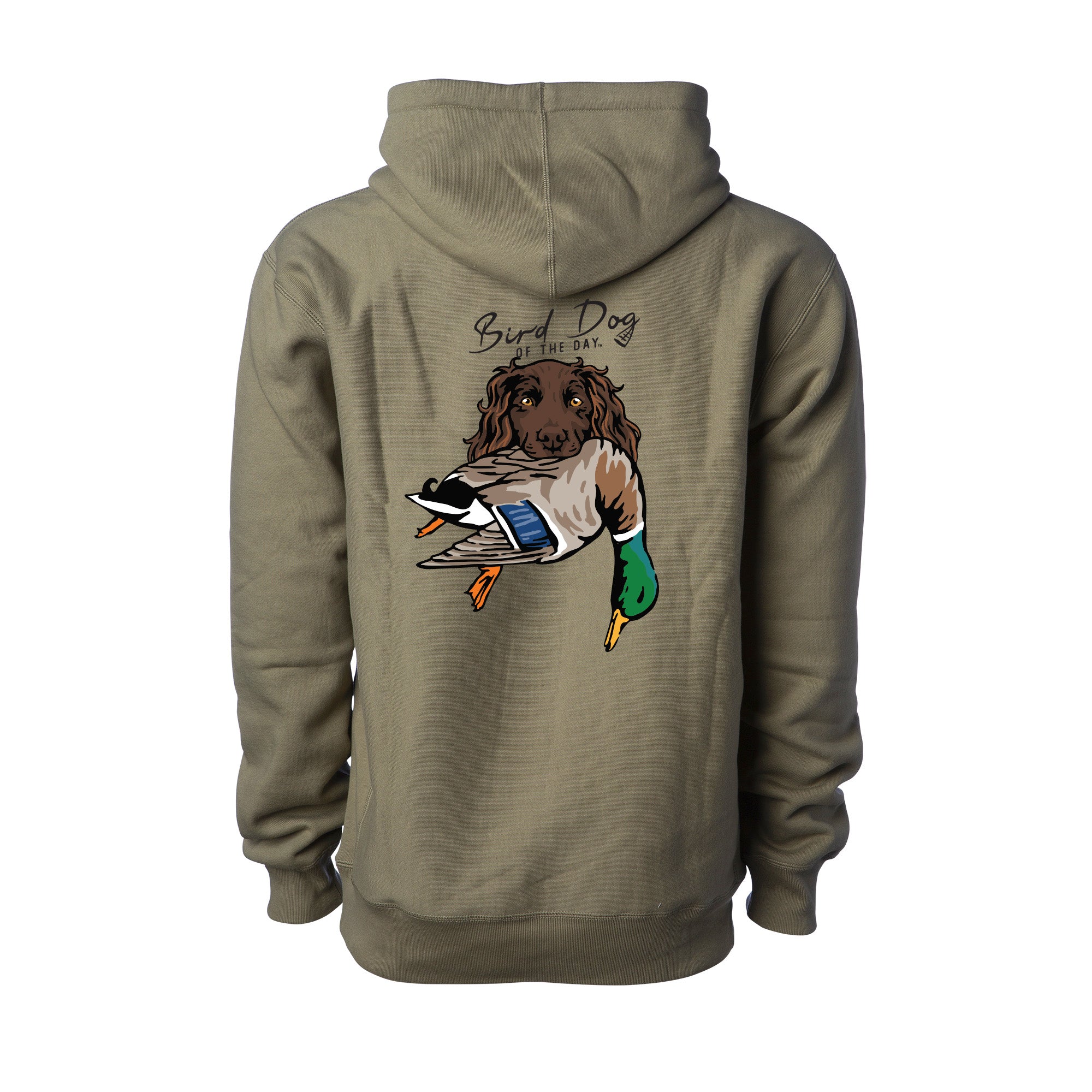 The backside has multiple options that include different duck dog breeds holding a mallard drake, as well as a classic blank backside option. If you're a duck hunter or duck dog owner, this hooded sweatshirt is made to be worn hard and often. The heavyweight brushed fleece will keep you warm in the field or at home, while staying soft and comfortable enough for everyday wear.