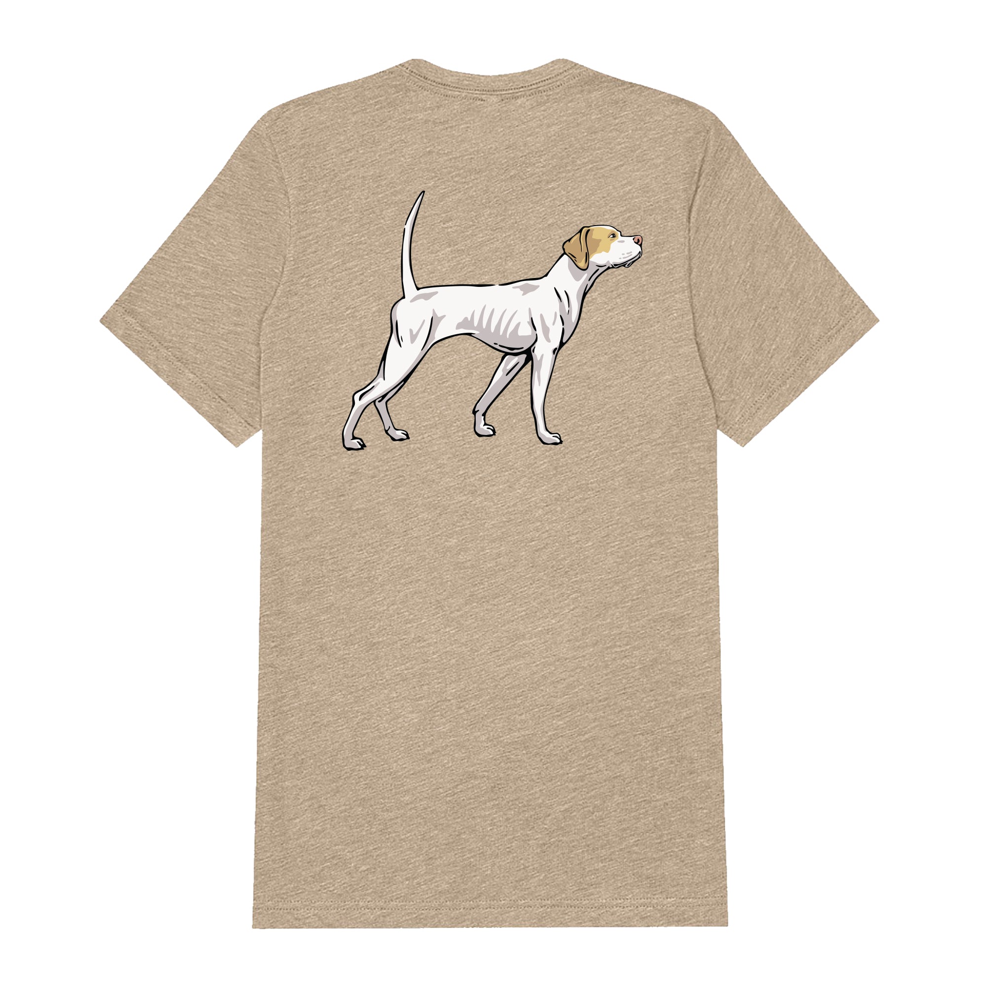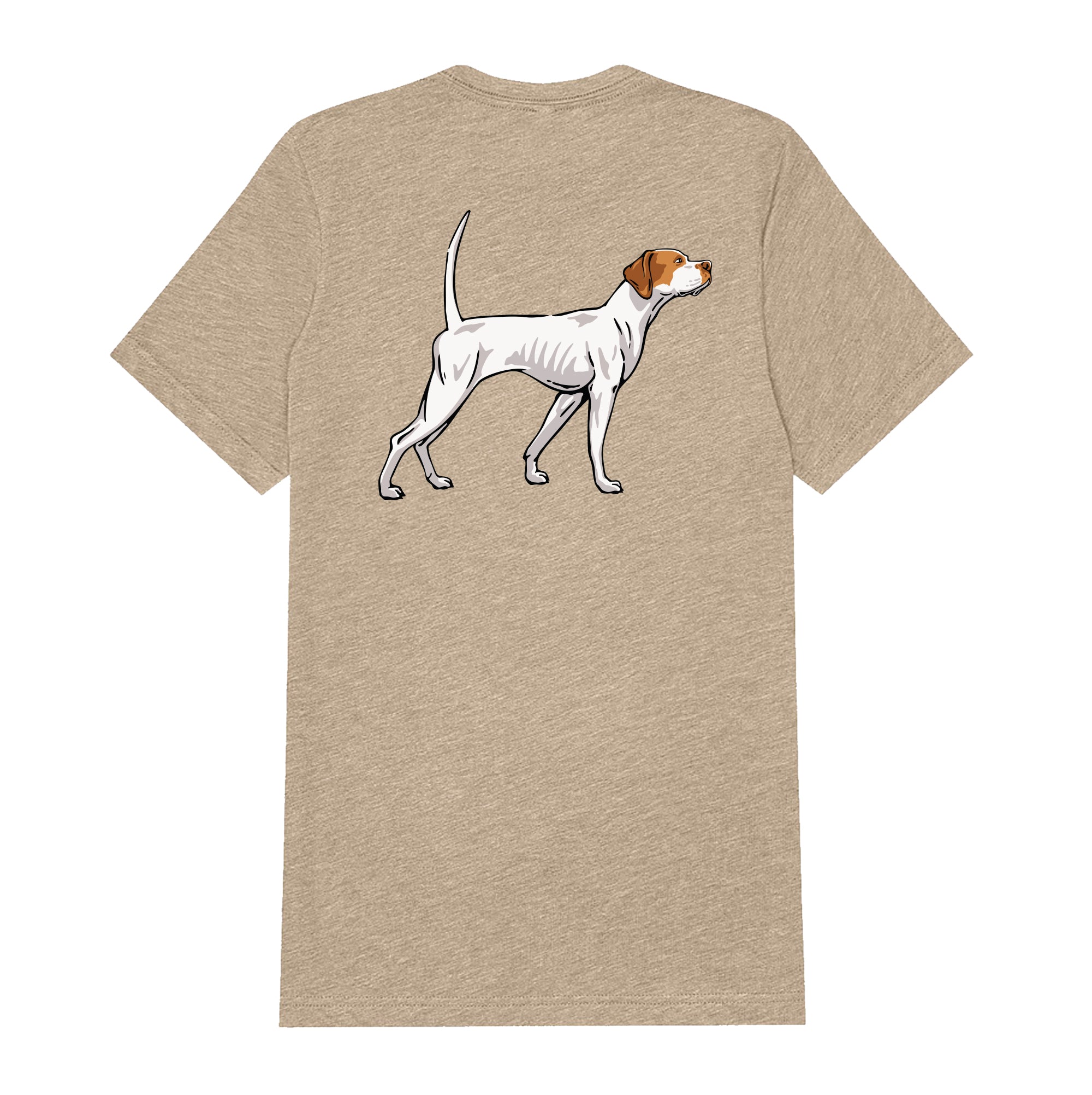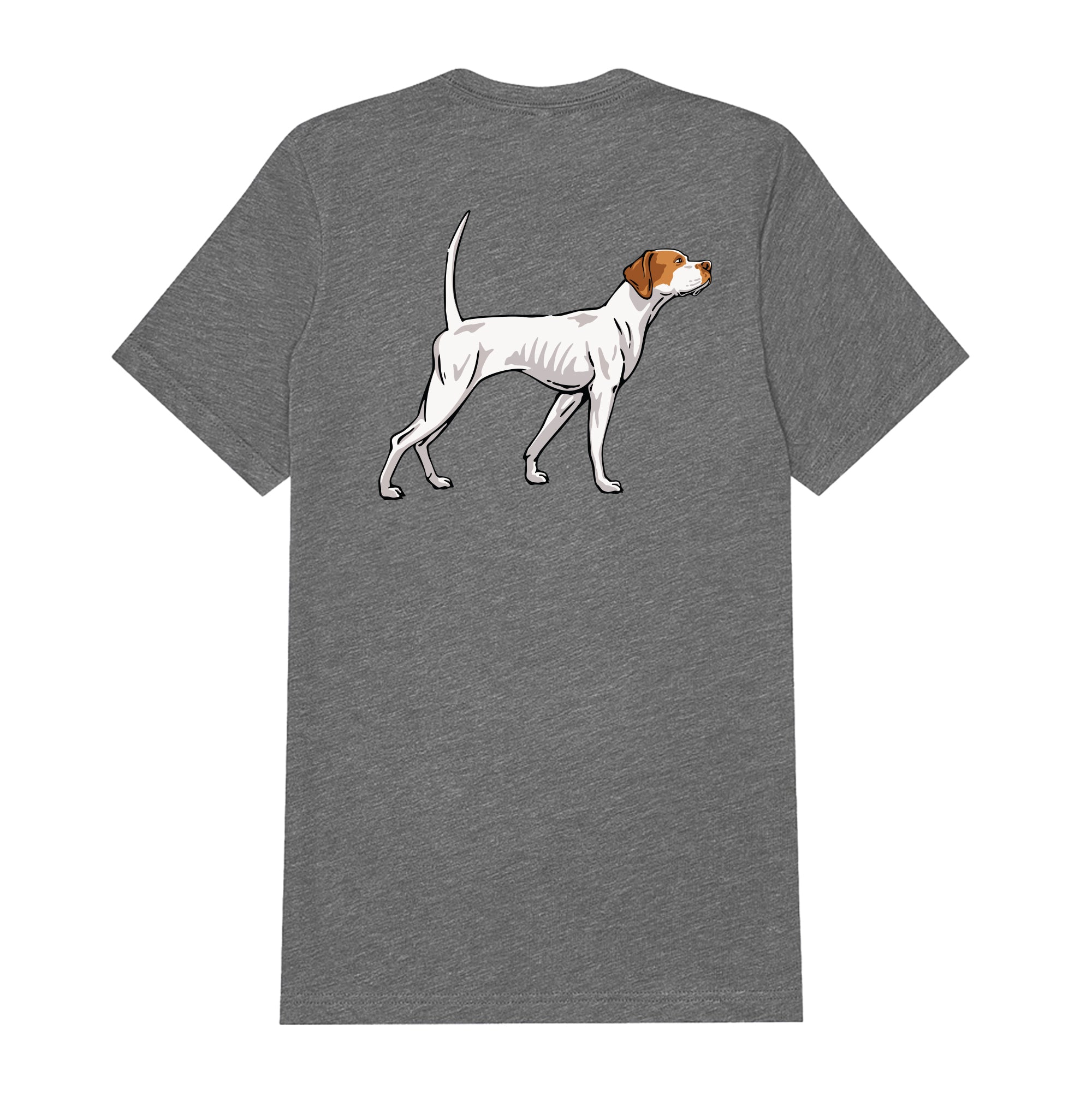 The Pointer Shirt is the perfect gift for anyone who loves what many consider the original bird dog. This exceptionally soft and lightweight unisex short-sleeved tee is pre-shrunk and made with 50% polyester, 25% Airlume combed and ring-spun cotton, and 25% rayon. Available in Blaze Orange, Olive, Tan, Denim and Grey colors.