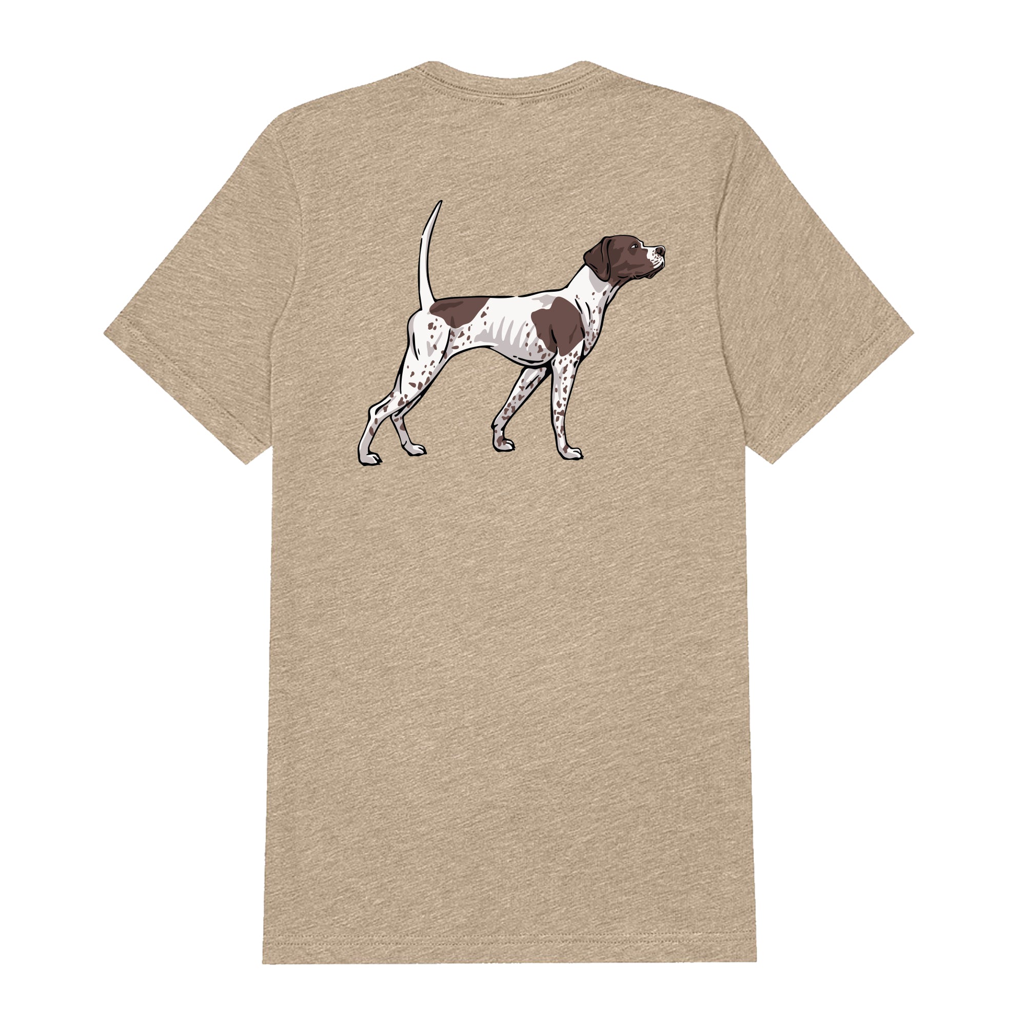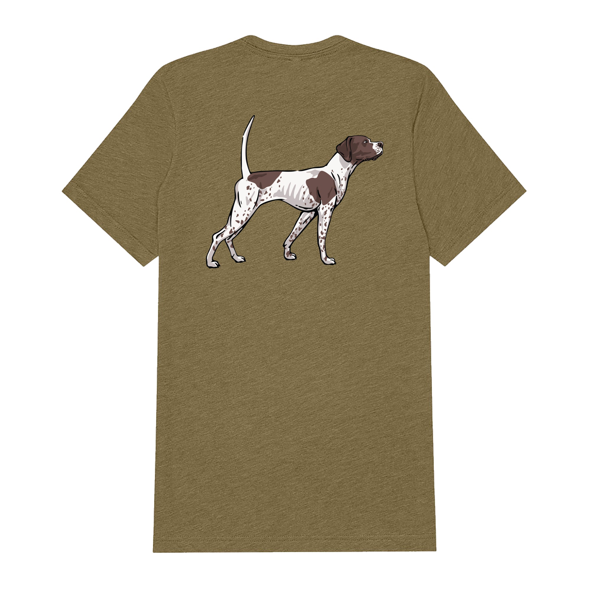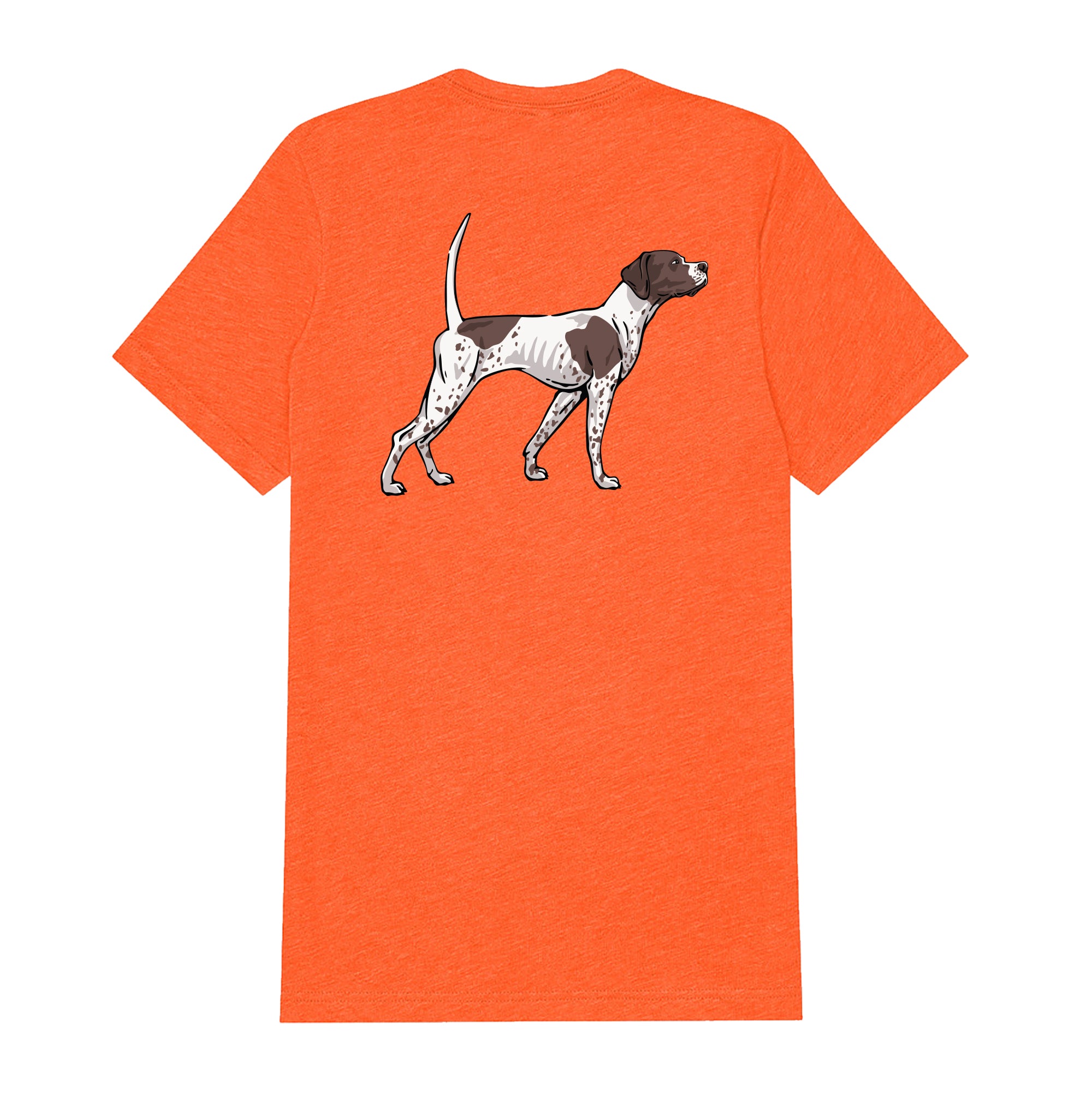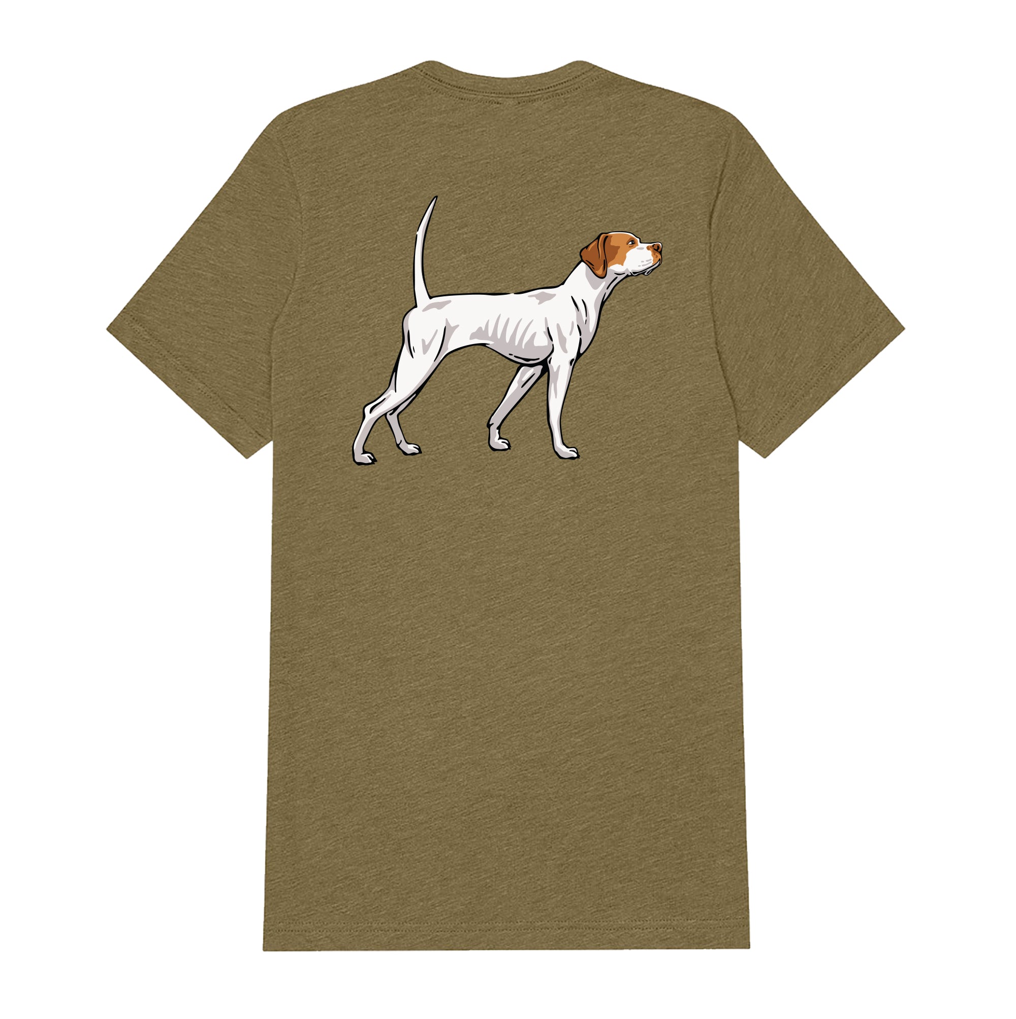 The Pointer Shirt is the perfect gift for anyone who loves what many consider the original bird dog. This exceptionally soft and lightweight unisex short-sleeved tee is pre-shrunk and made with 50% polyester, 25% Airlume combed and ring-spun cotton, and 25% rayon. Available in Blaze Orange, Olive, Tan, Denim and Grey colors.