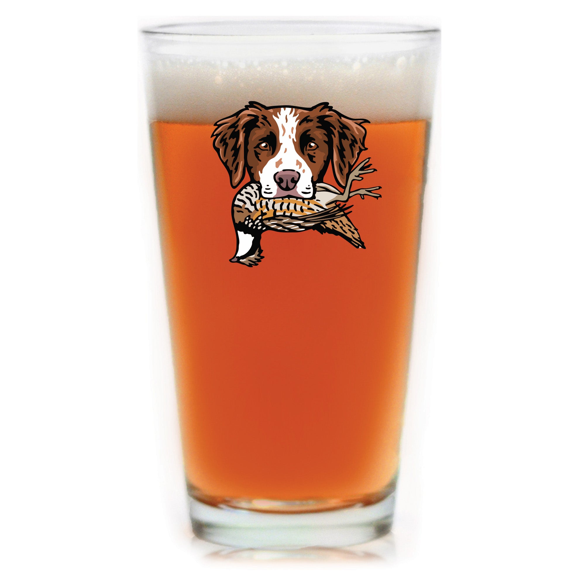 The Brittany Bird Dog Pint Glass celebrates a fast, close-working bird dog with a natural instinct for finding birds. Long favored in the uplands, the Brittany in this design is proudly carrying a bobwhite quail. Whether it's poured after a long day afield or shared with friend at camp, this glass honors the bird dogs and seasons that shape the stories we carry home.