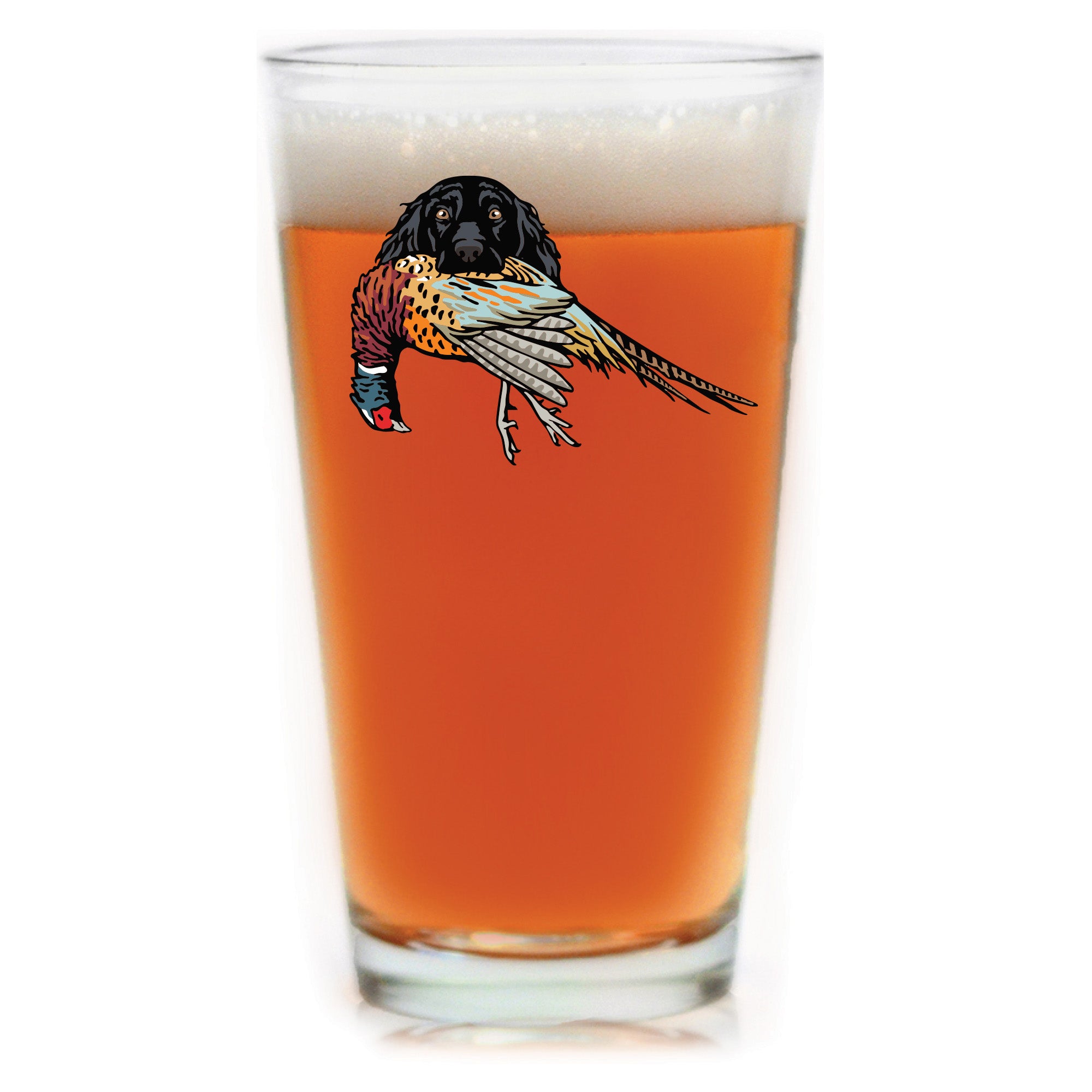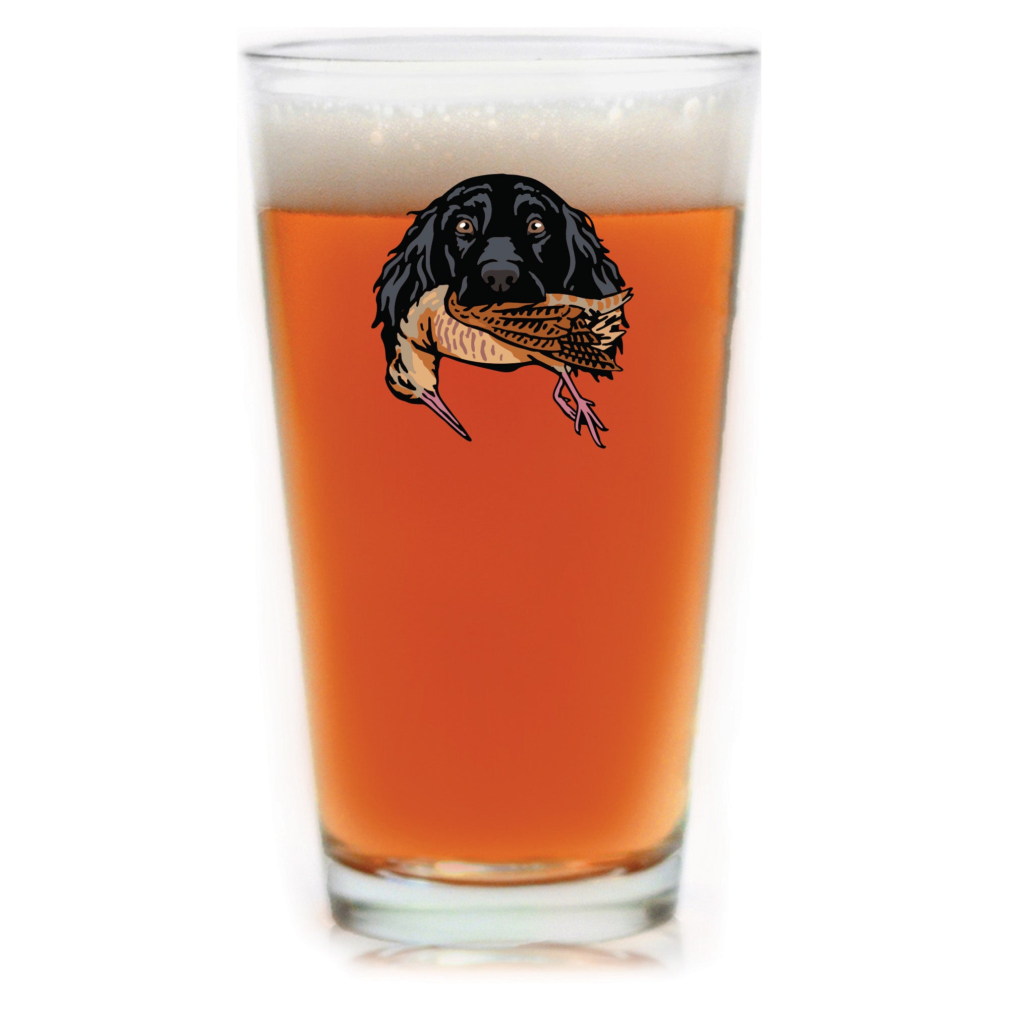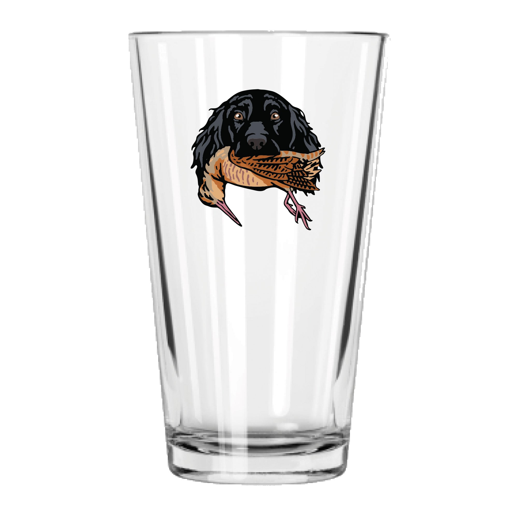 The Cocker Spaniel Bird Dog Pint Glass celebrates a fast, close-working bird dog with a natural instinct for finding birds. Long favored in the uplands for their drive and enthusiasm, the cocker in this design is proudly carrying a woodcock. Whether it's poured after a long day afield or shared with friend at camp, this glass honors the bird dogs and seasons that shape the stories we carry home.