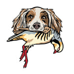 The English Setter Bird Dog Decal Sticker honors a classic upland bird dog defined by its style, range and deep roots in the grouse woods. Featuring an English Setter proudly carrying a ruffed grouse, this design pays tribute to a breed shaped by wild birds in wild places. Whether it's on your truck, cooler, dog box, or gun case, this decal represents a lifestyle built around bird dogs and the memories we cherish with them.