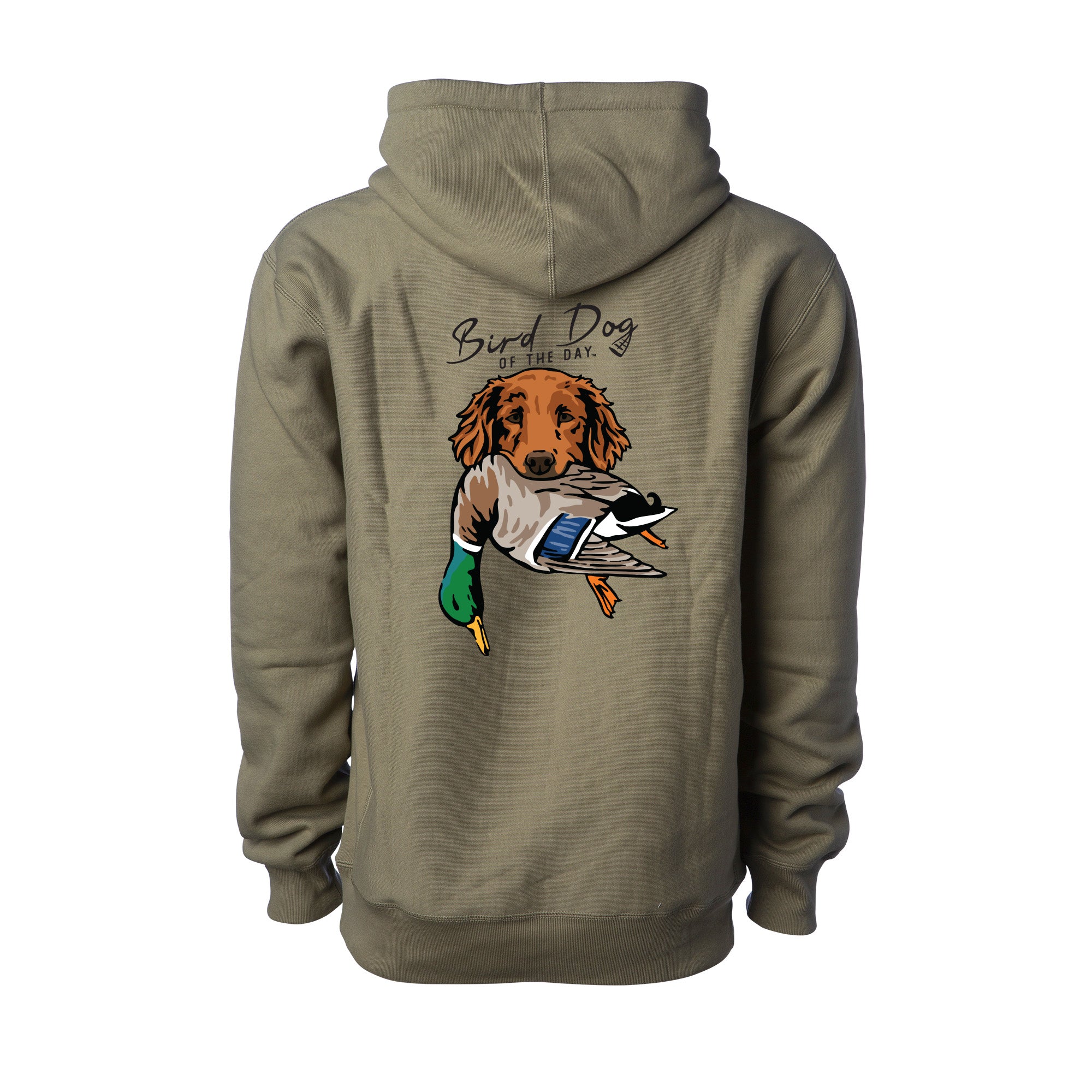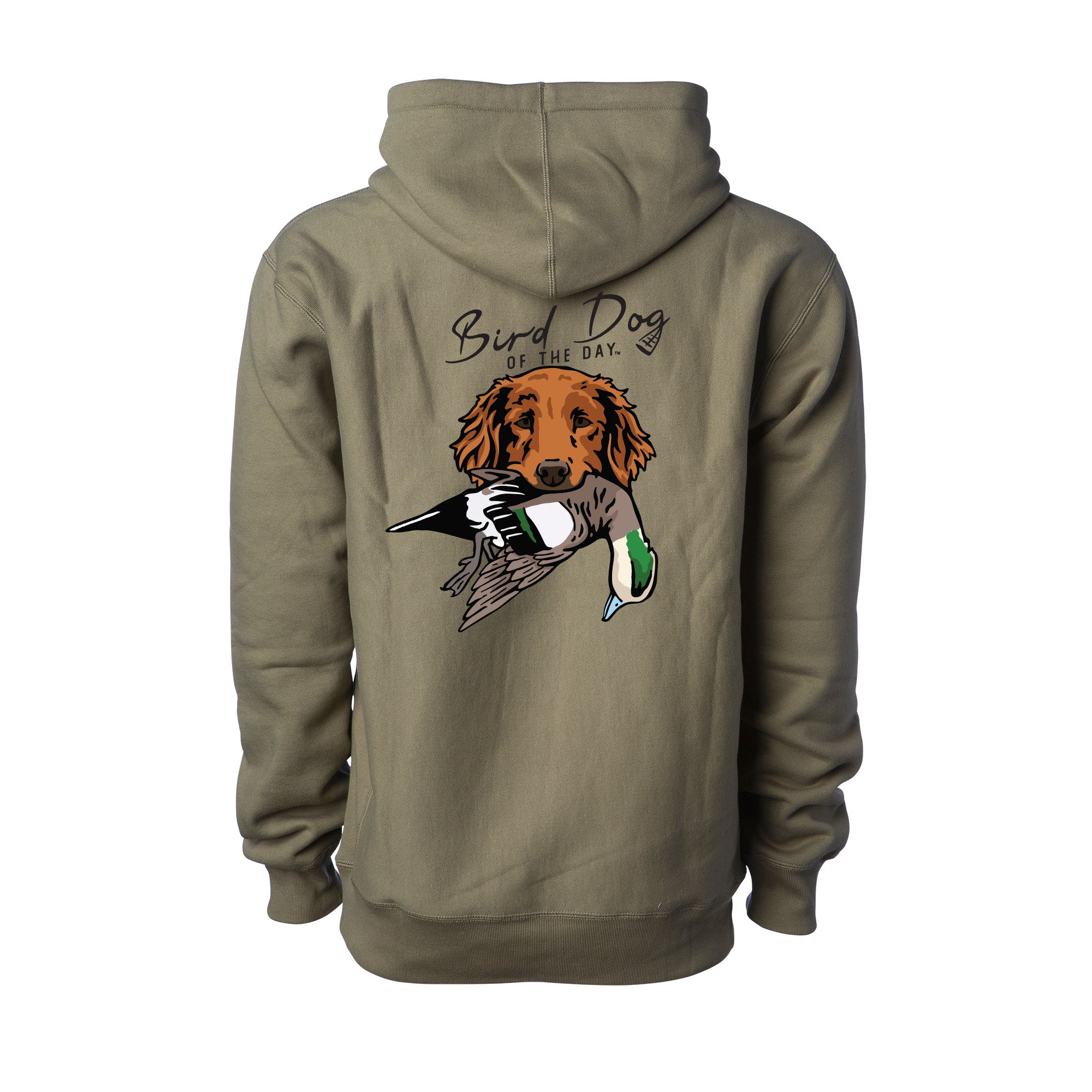 - Bird Dog of the Day logo on the front and retriever design on the back