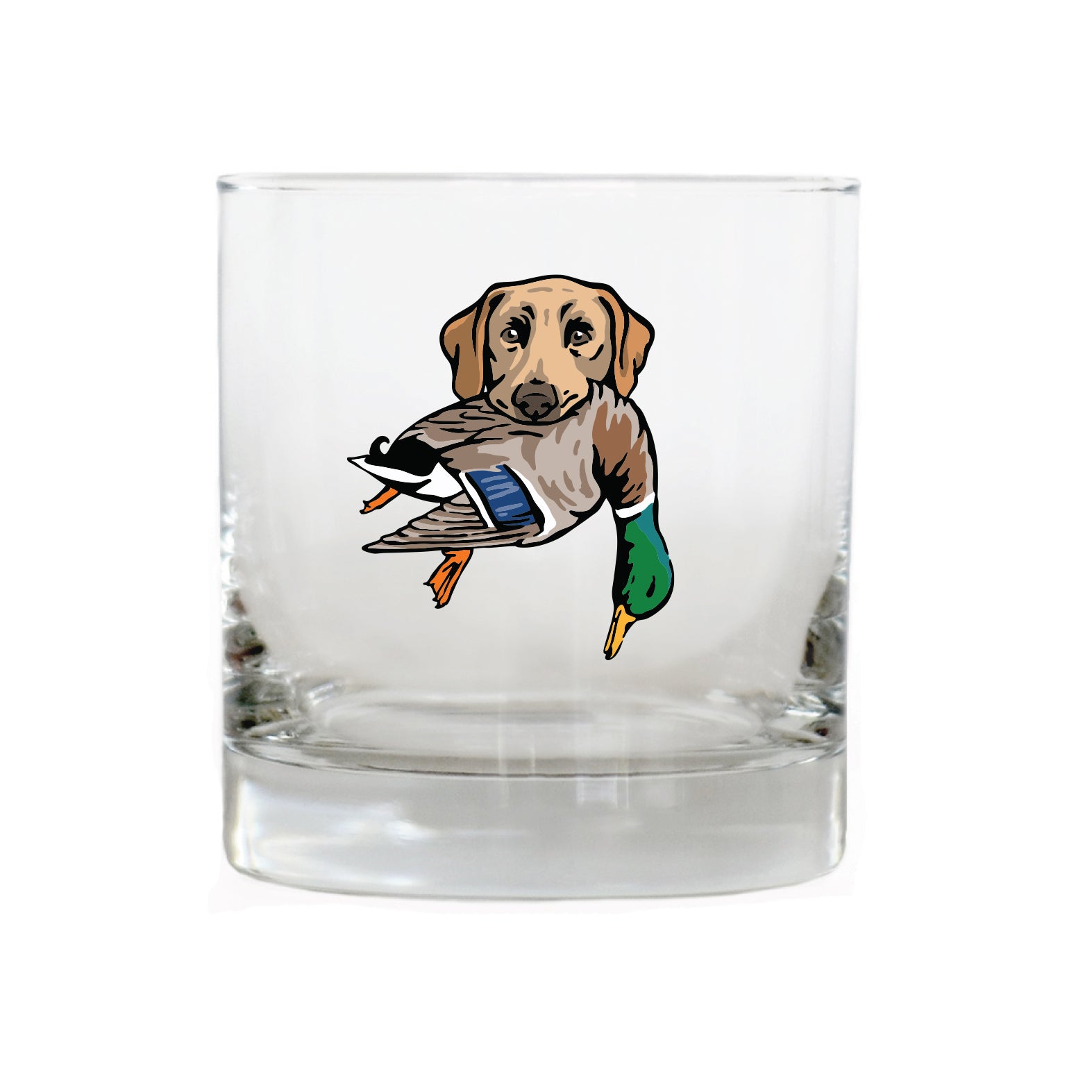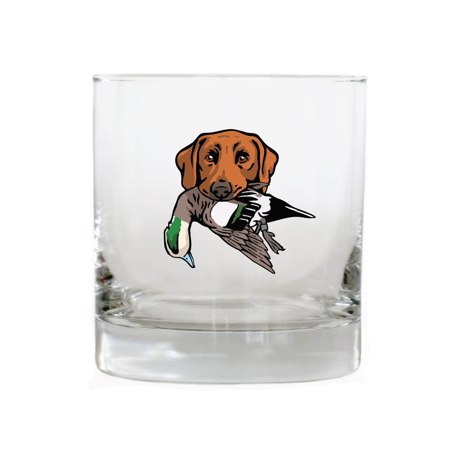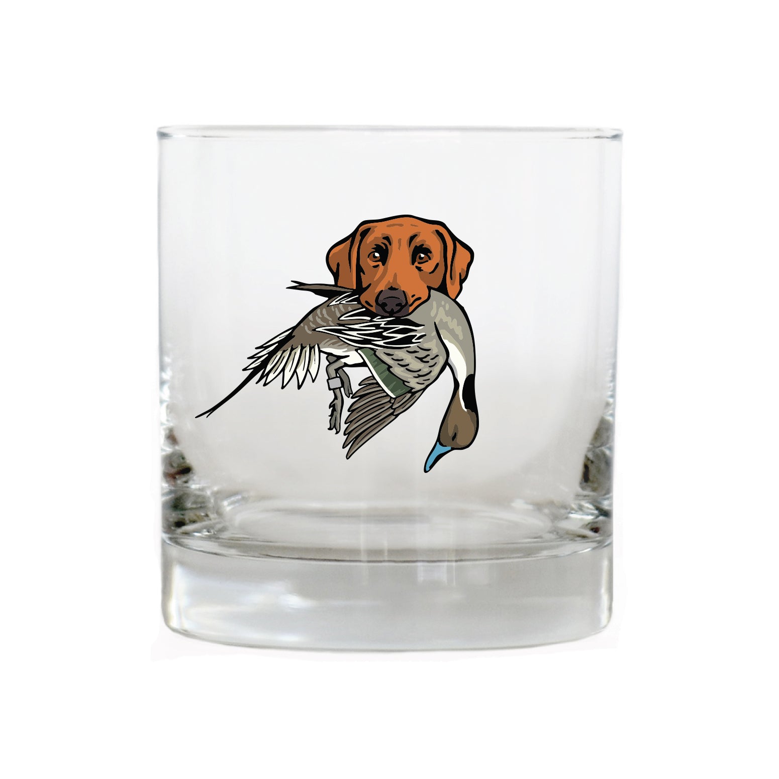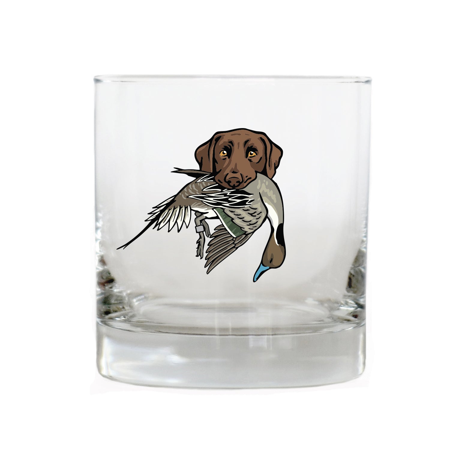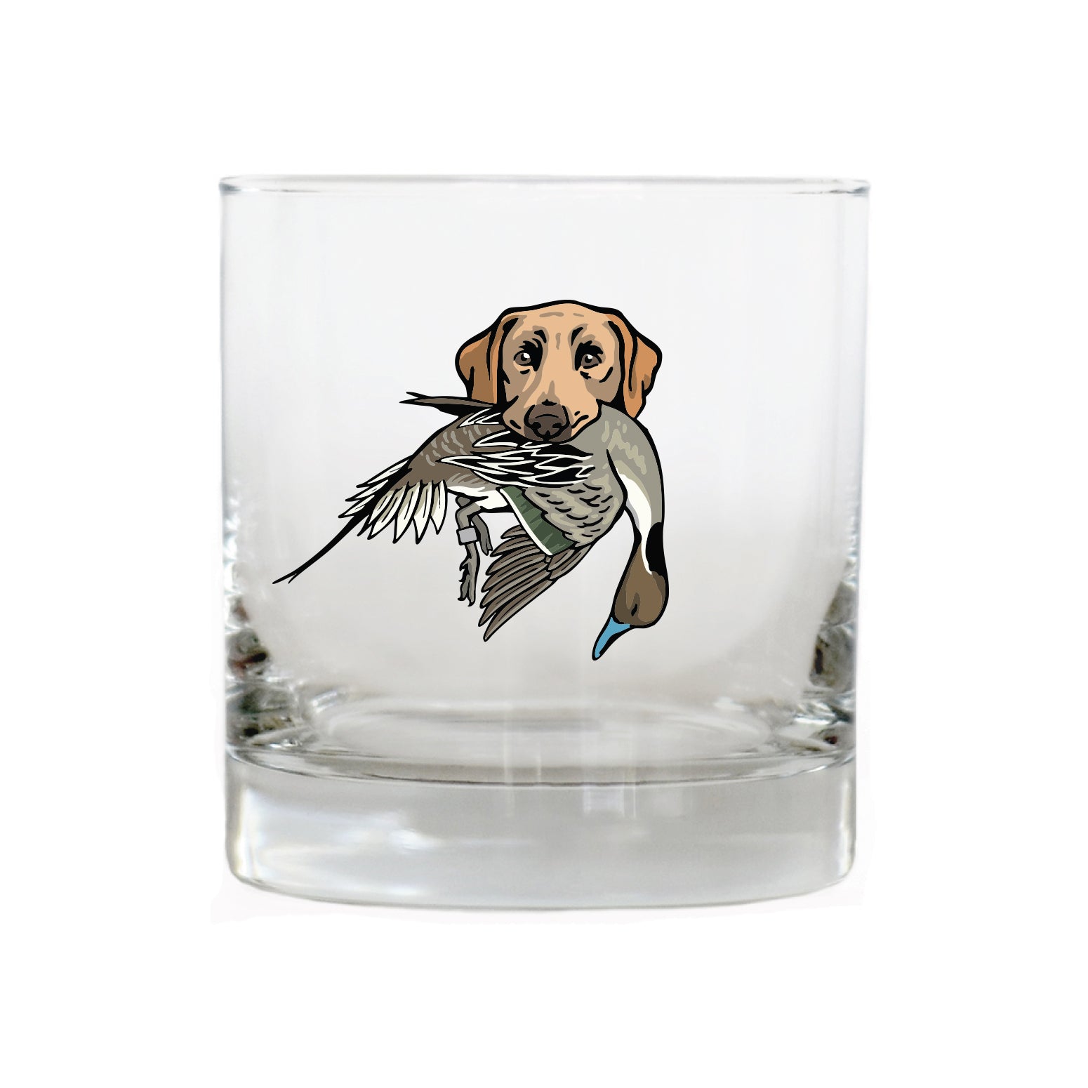 The Labrador Retriever Bird Dog Whiskey Glass celebrates this legendary duck dog, built for cold water, long retrieves and all-day hunts. The lab in this design is proudly carrying a mallard drake. Whether it's poured after a long day afield or shared with friend at camp, this glass honors the bird dogs and seasons that shape the stories we carry home.