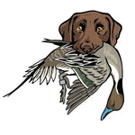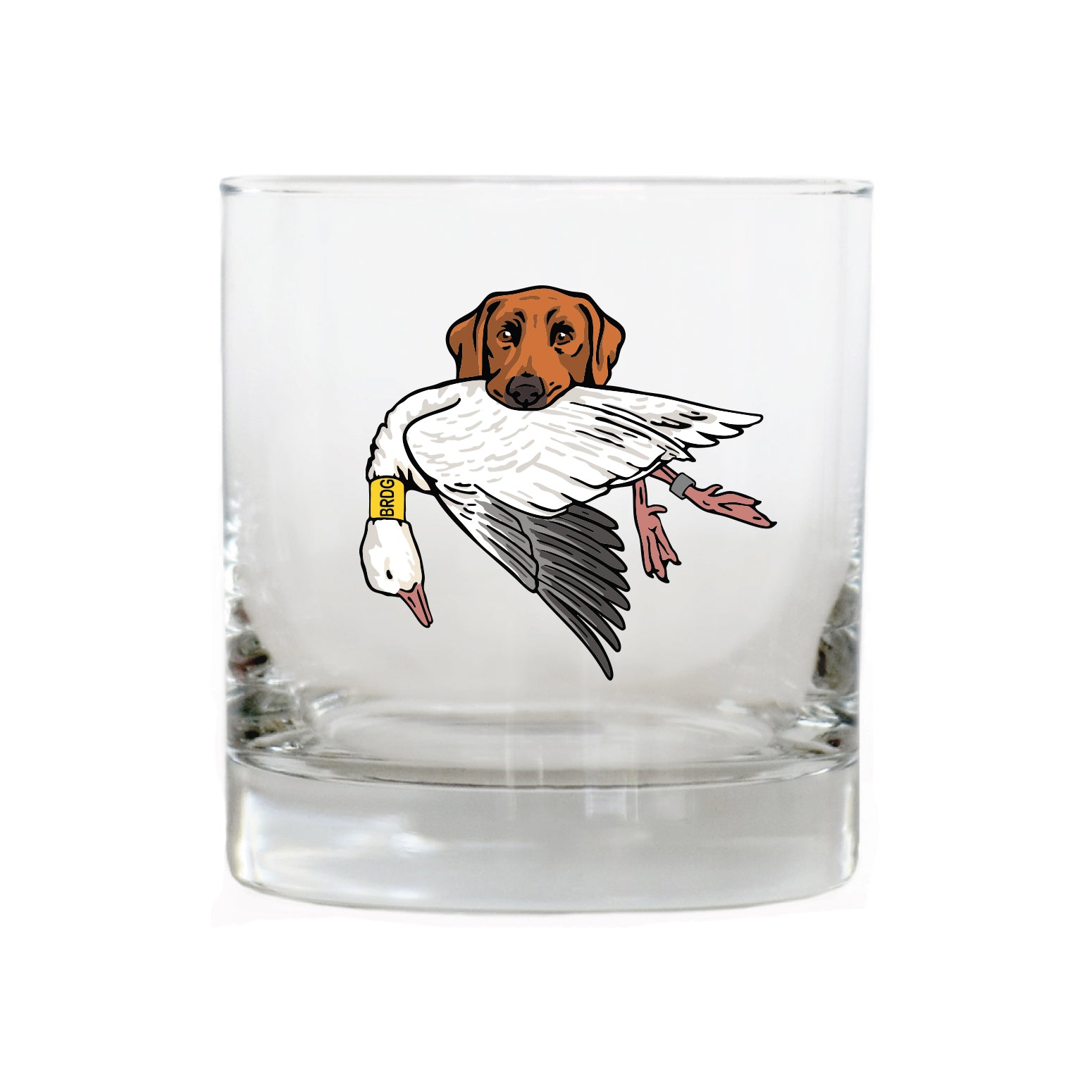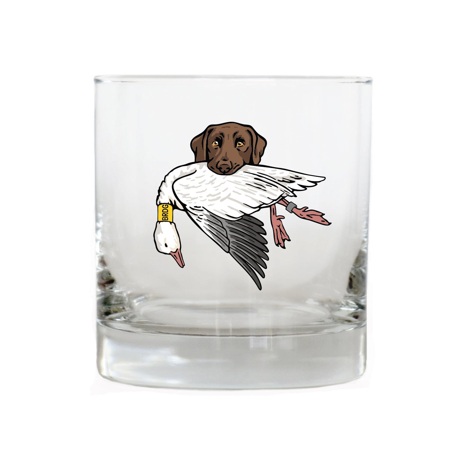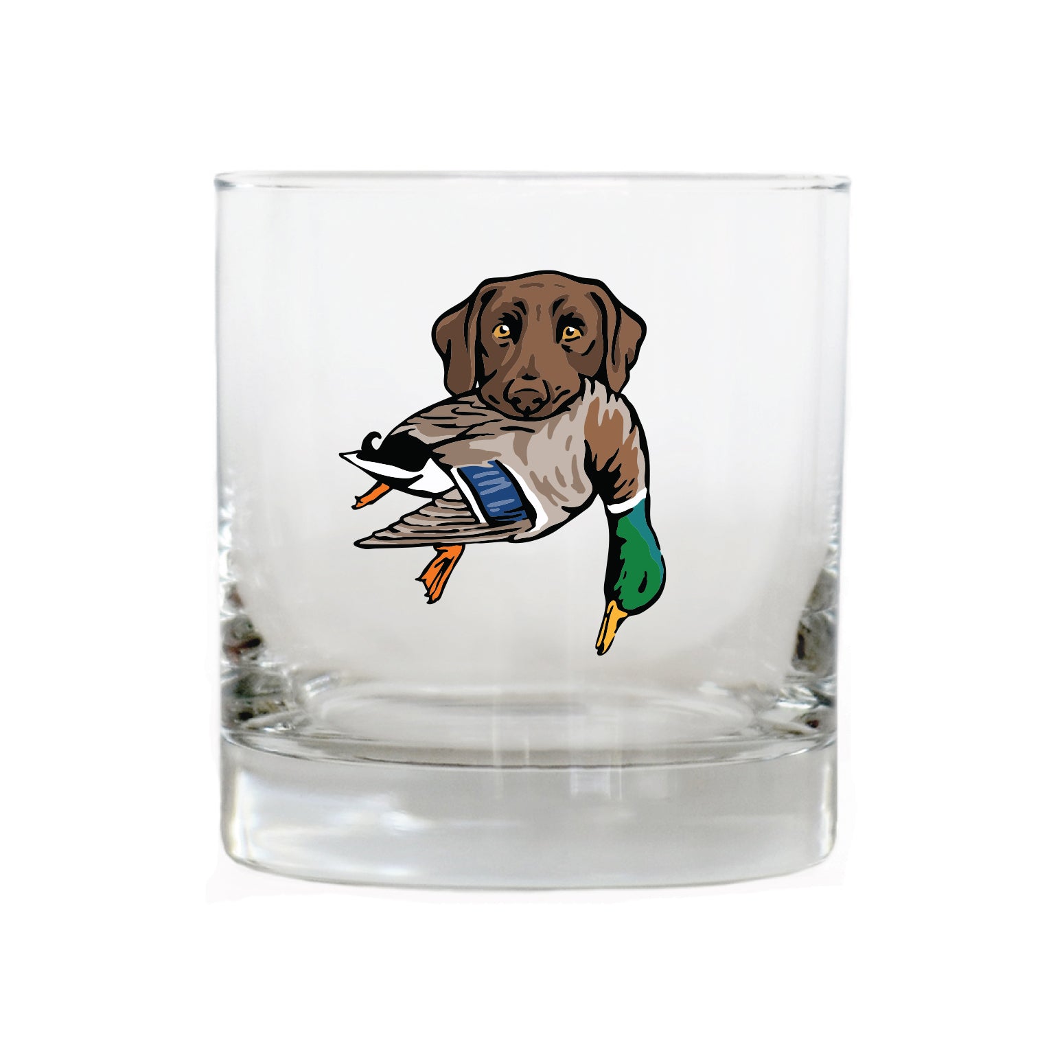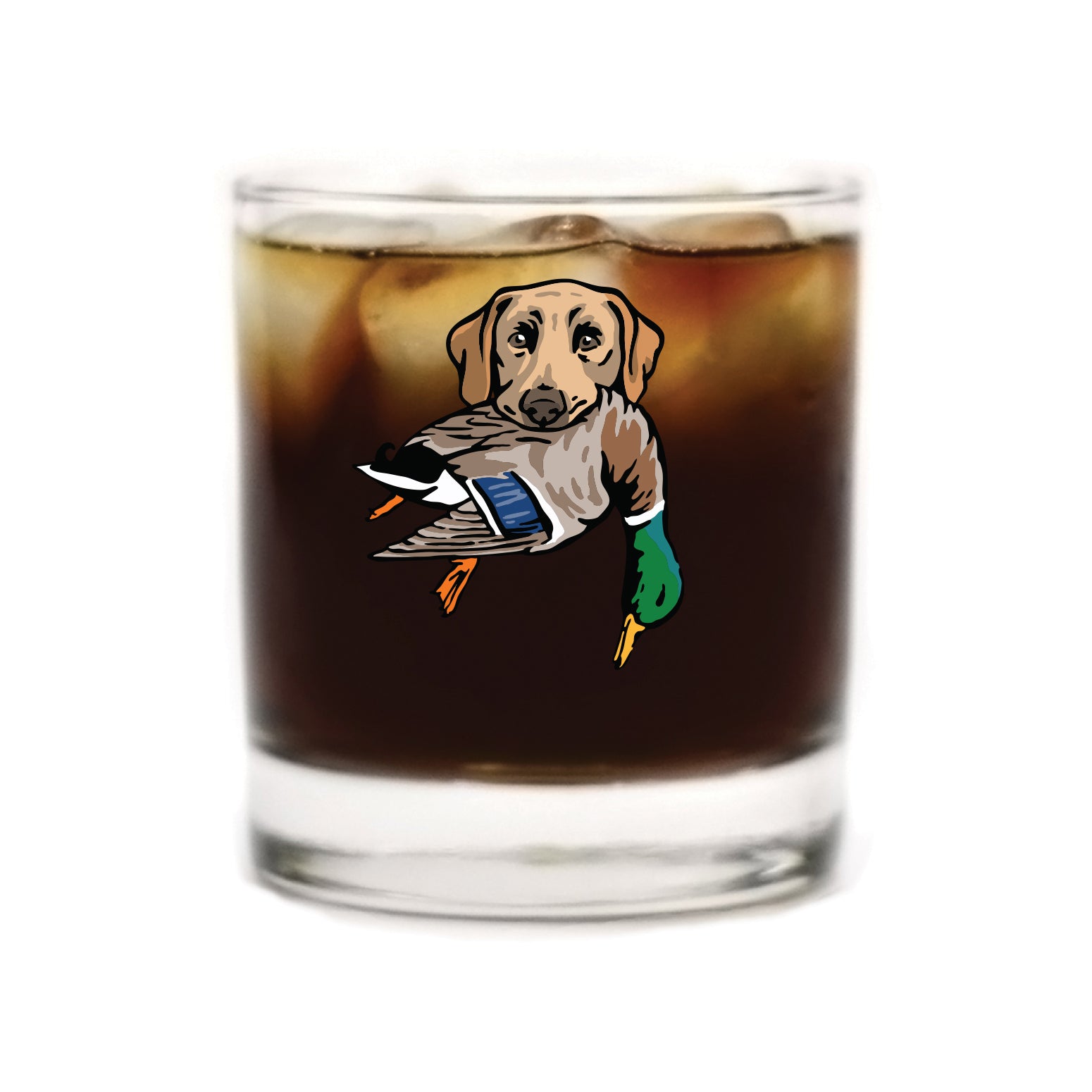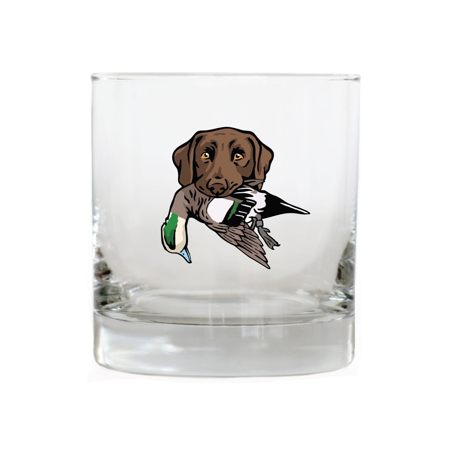 The Labrador Retriever Bird Dog Whiskey Glass celebrates this legendary duck dog, built for cold water, long retrieves and all-day hunts. The lab in this design is proudly carrying a mallard drake. Whether it's poured after a long day afield or shared with friend at camp, this glass honors the bird dogs and seasons that shape the stories we carry home.