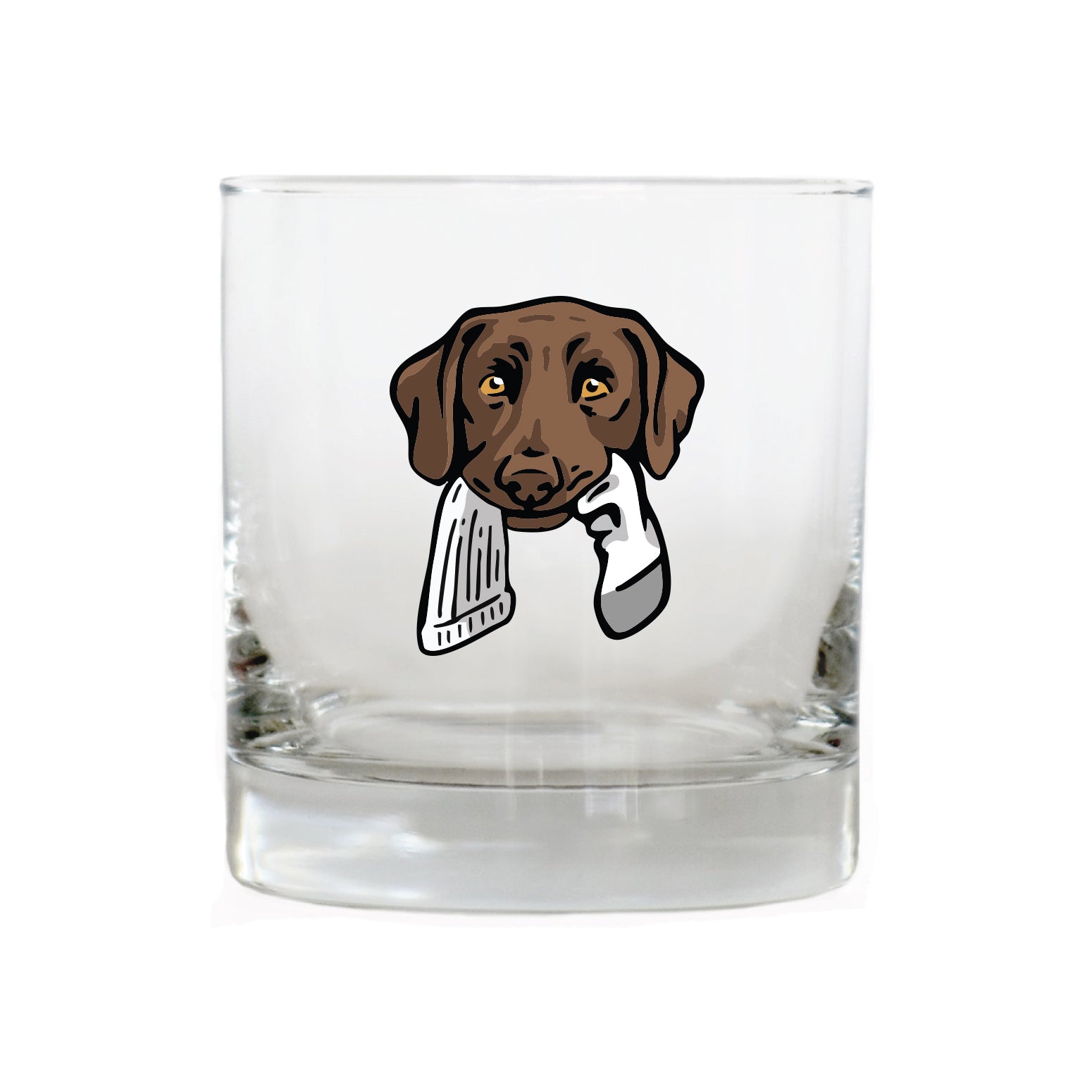 The Labrador Retriever Bird Dog Whiskey Glass celebrates this legendary duck dog, built for cold water, long retrieves and all-day hunts. The lab in this design is proudly carrying a mallard drake. Whether it's poured after a long day afield or shared with friend at camp, this glass honors the bird dogs and seasons that shape the stories we carry home.