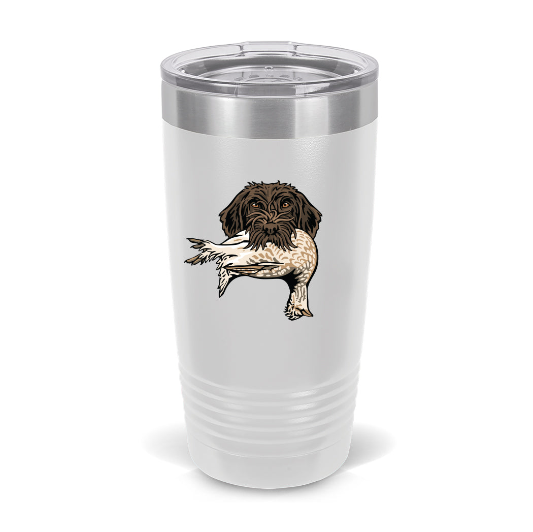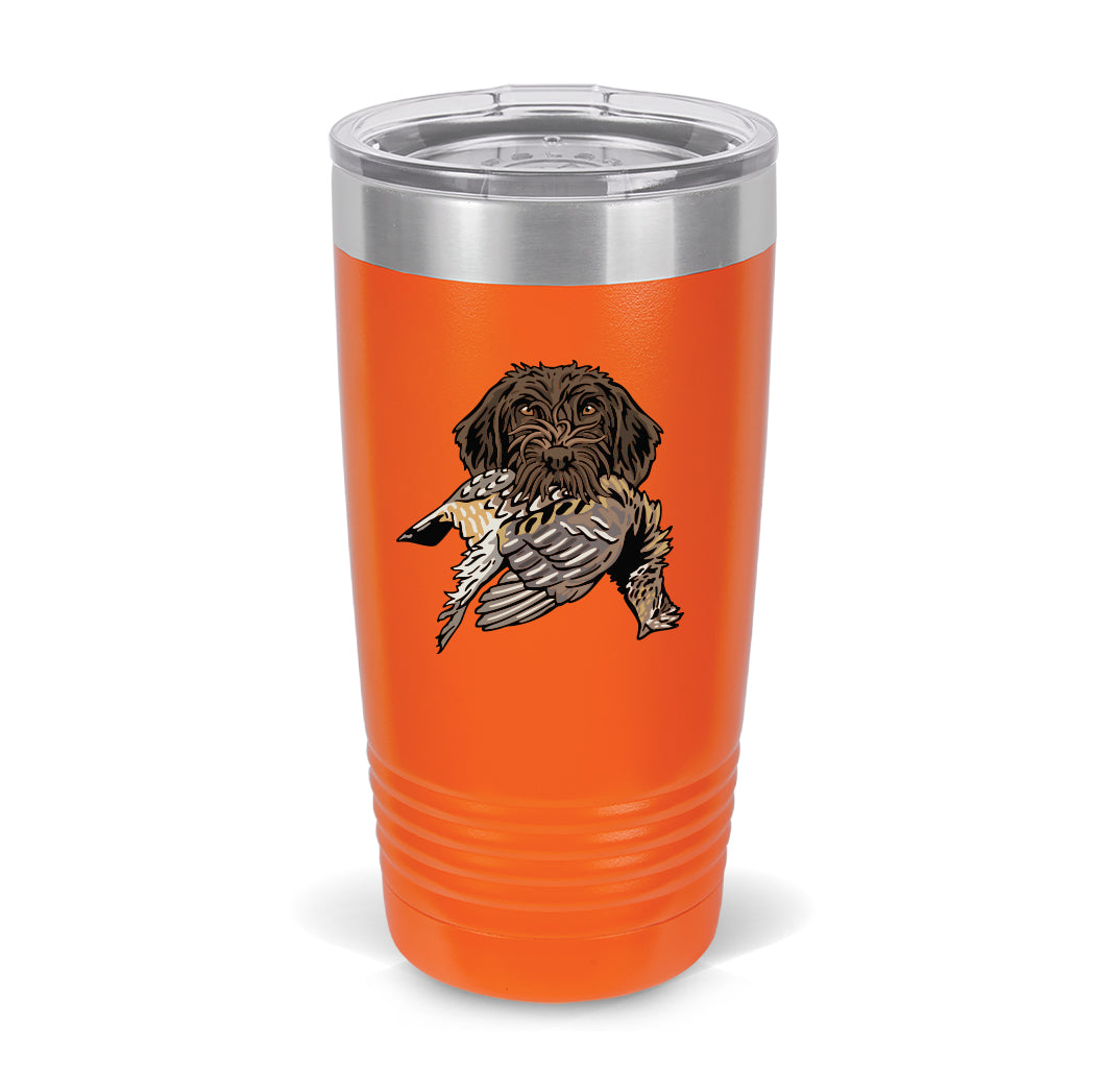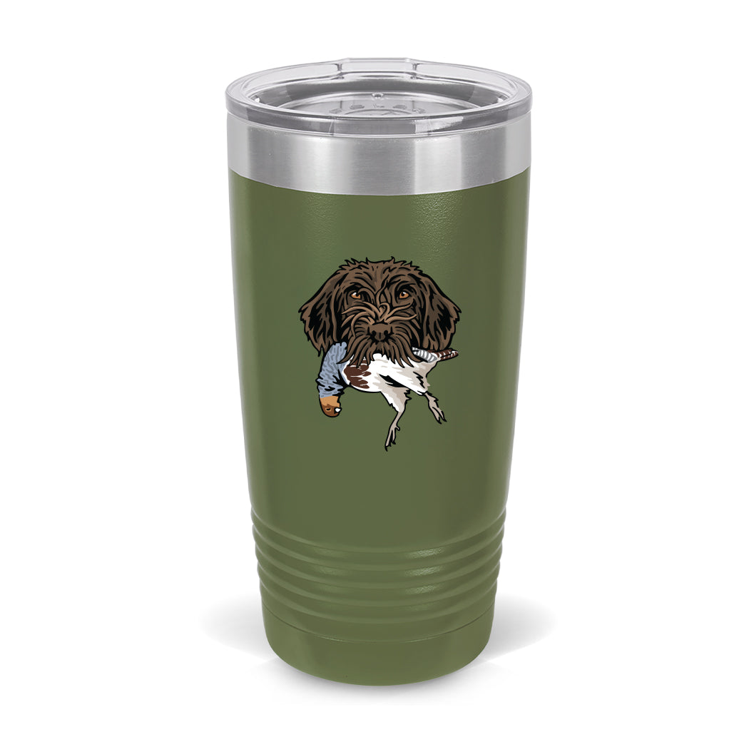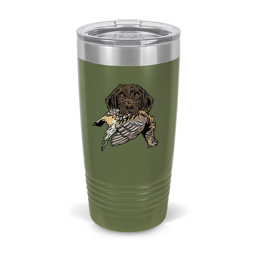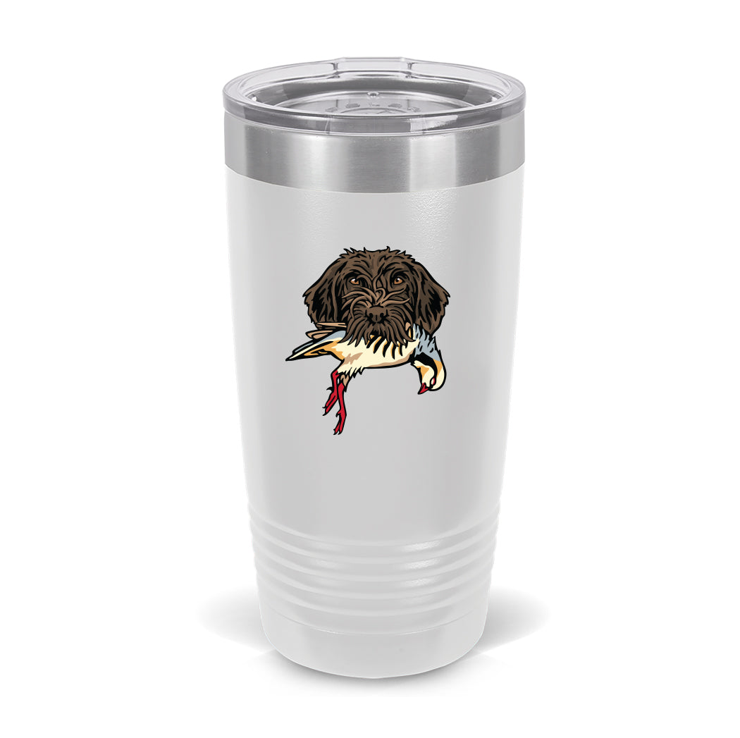 The Wirehaired Pointing Griffon Bird Dog Coffee Tumbler celebrates one of the most versatile bird dog breeds. Featuring a "Griff" proudly carrying a pheasant, this design honors the breed defined by cooperation, grit, a methodical nose, and that legendary beard.