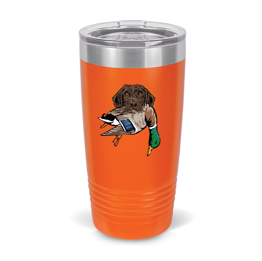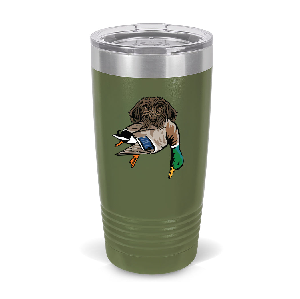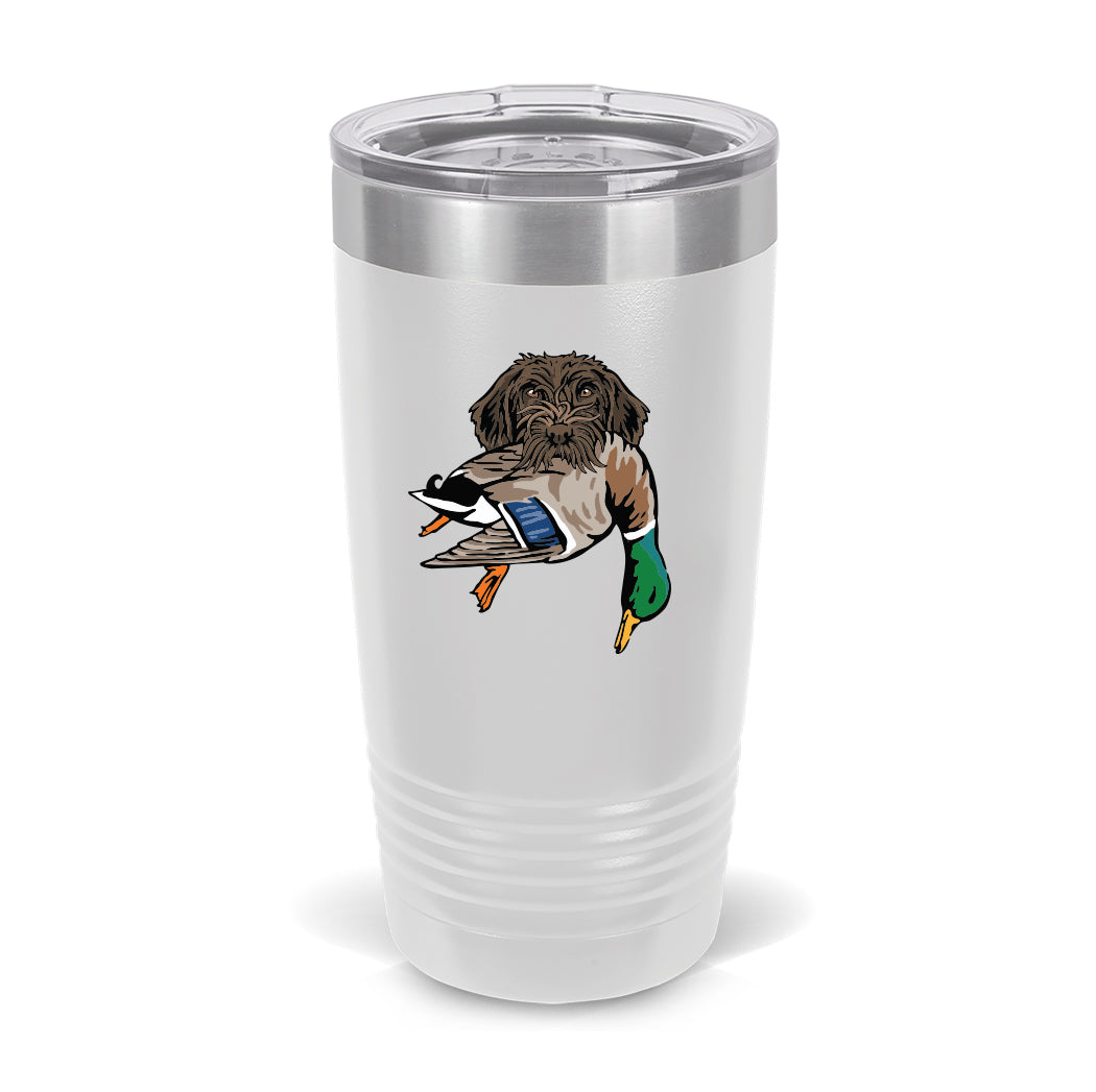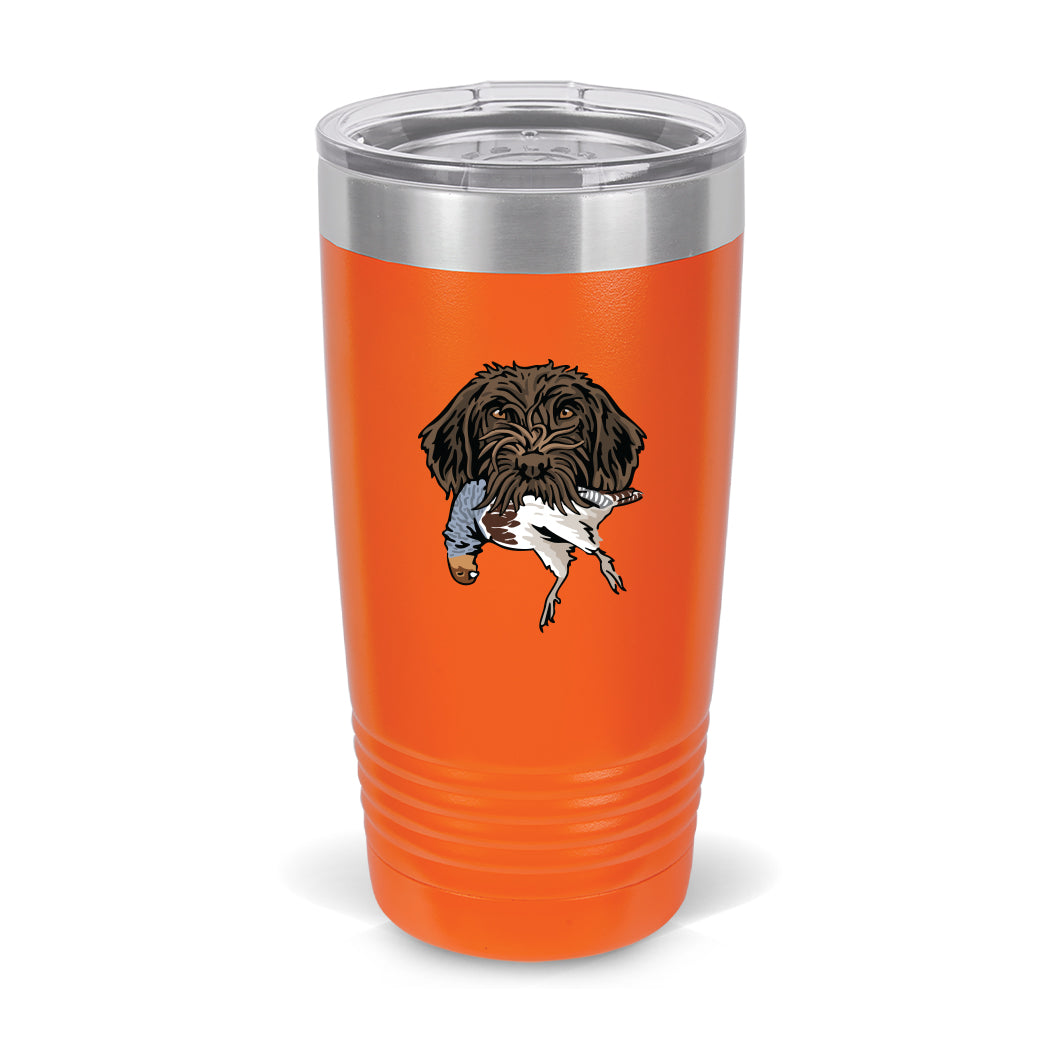 The Wirehaired Pointing Griffon Bird Dog Coffee Tumbler celebrates one of the most versatile bird dog breeds. Featuring a "Griff" proudly carrying a pheasant, this design honors the breed defined by cooperation, grit, a methodical nose, and that legendary beard.